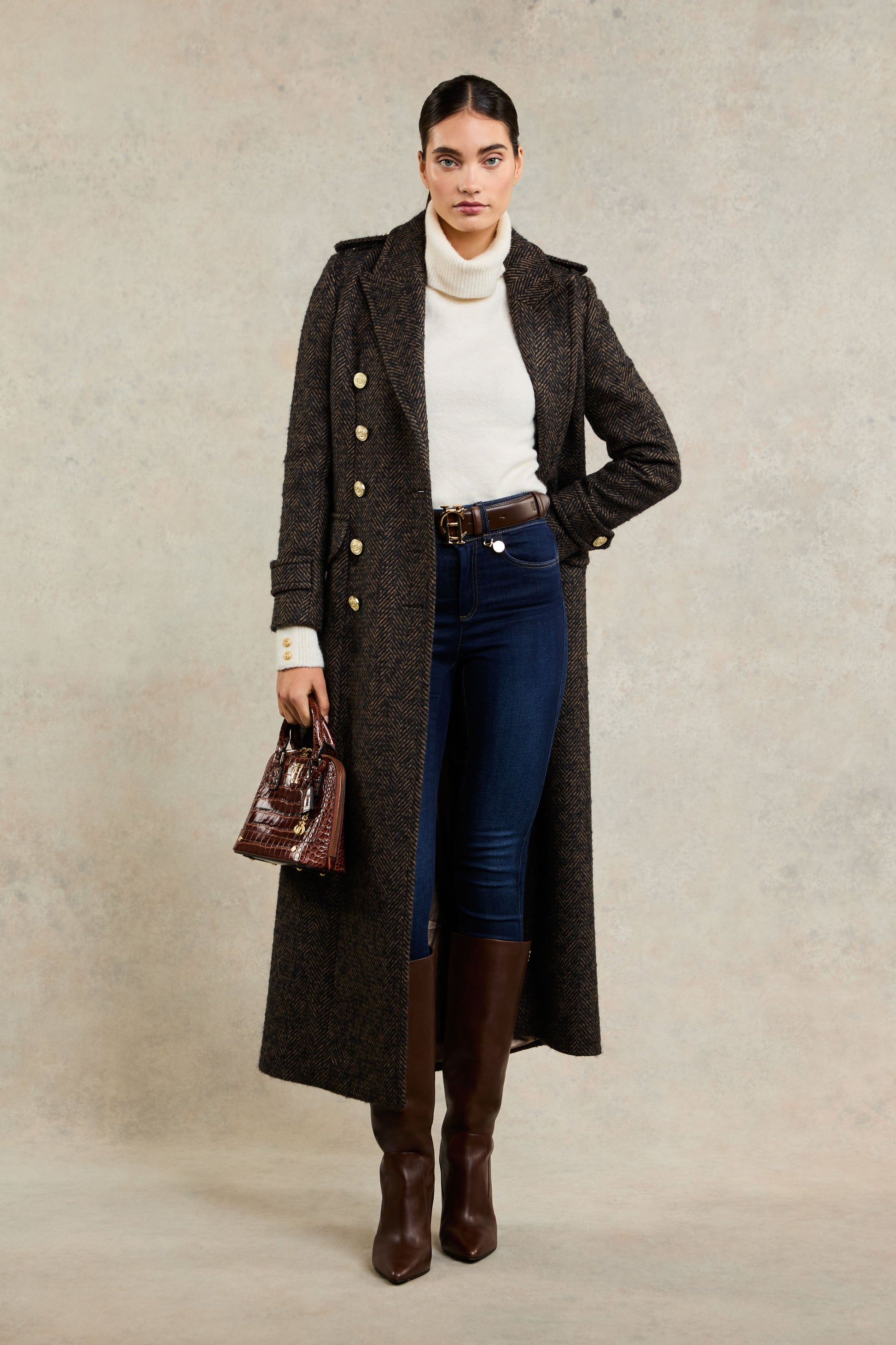 The latest edition to our jean collection. each pair has been woven with an ample amount of stretch to sculpt and flatter your silhouette. Created with Thermolite Polyester Yarns to trap air and hold warm. these jeans are a cold-weather essential. With an internal fleece lining. high waisted fit. and back pockets. the jeans have been detailed with our iconic hardware.