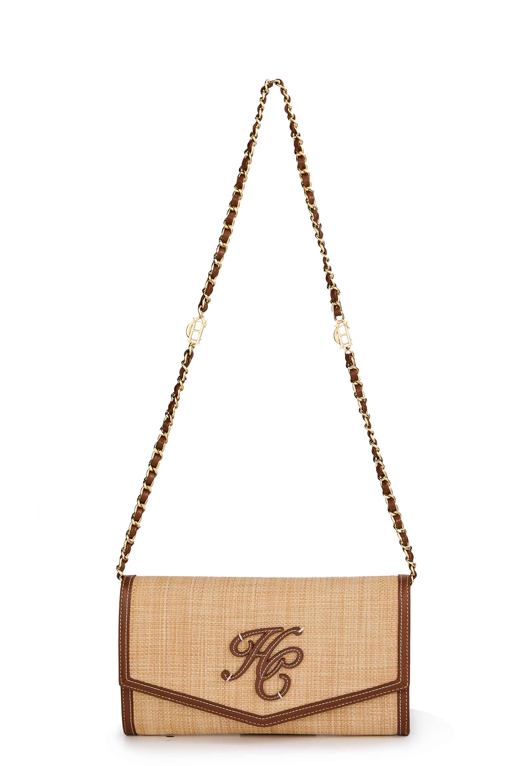 Elevate your summer aesthetic with our exquisitely crafted Amalfi Clutch Bag in Natural/Tan. This sophisticated accessory seamlessly blends natural woven rattan with premium tan leather trim. creating a luxurious yet effortlessly casual piece. The meticulous contrast stitching and our signature leather logo patch add refined detail. while the iconic internal card holder. adorned with classic gold HC hardware. offers both functionality and elegance.