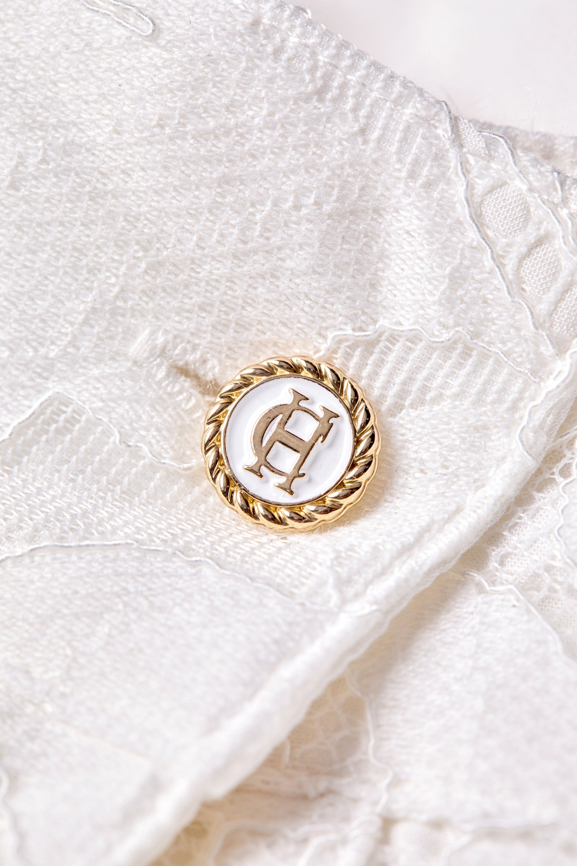 Designed in a full-length silhouette. it features bold floral cotton lace in a striking white. creating a timeless and statement-making aesthetic.