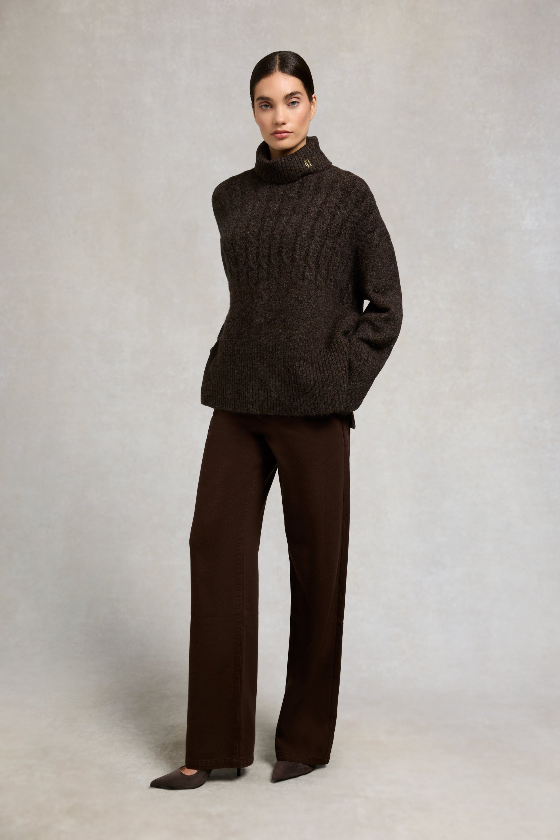 Antonia Cable Roll Neck Knit (Chocolate)