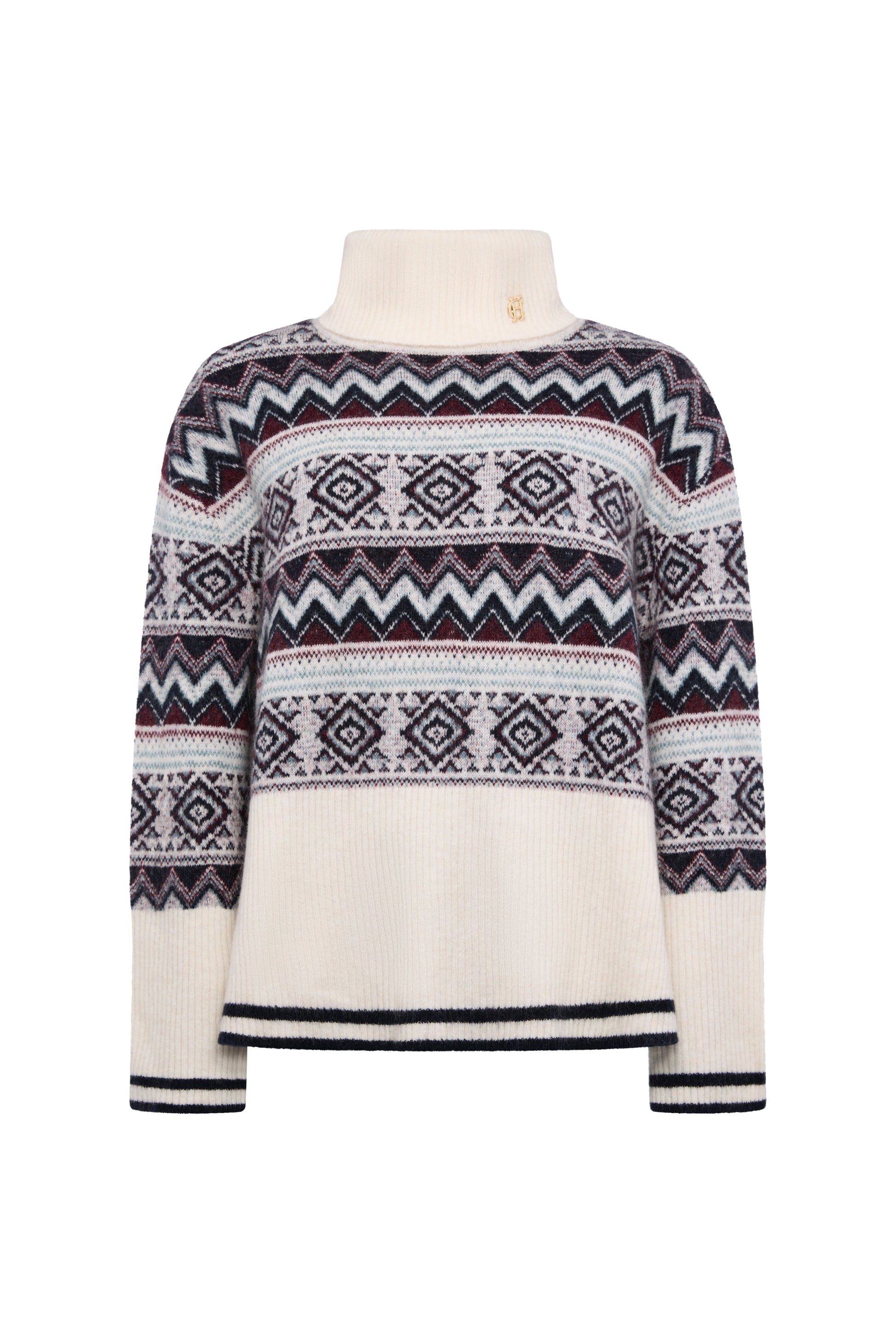 Antonia Fairisle Roll Neck Knit (Natural Blue)