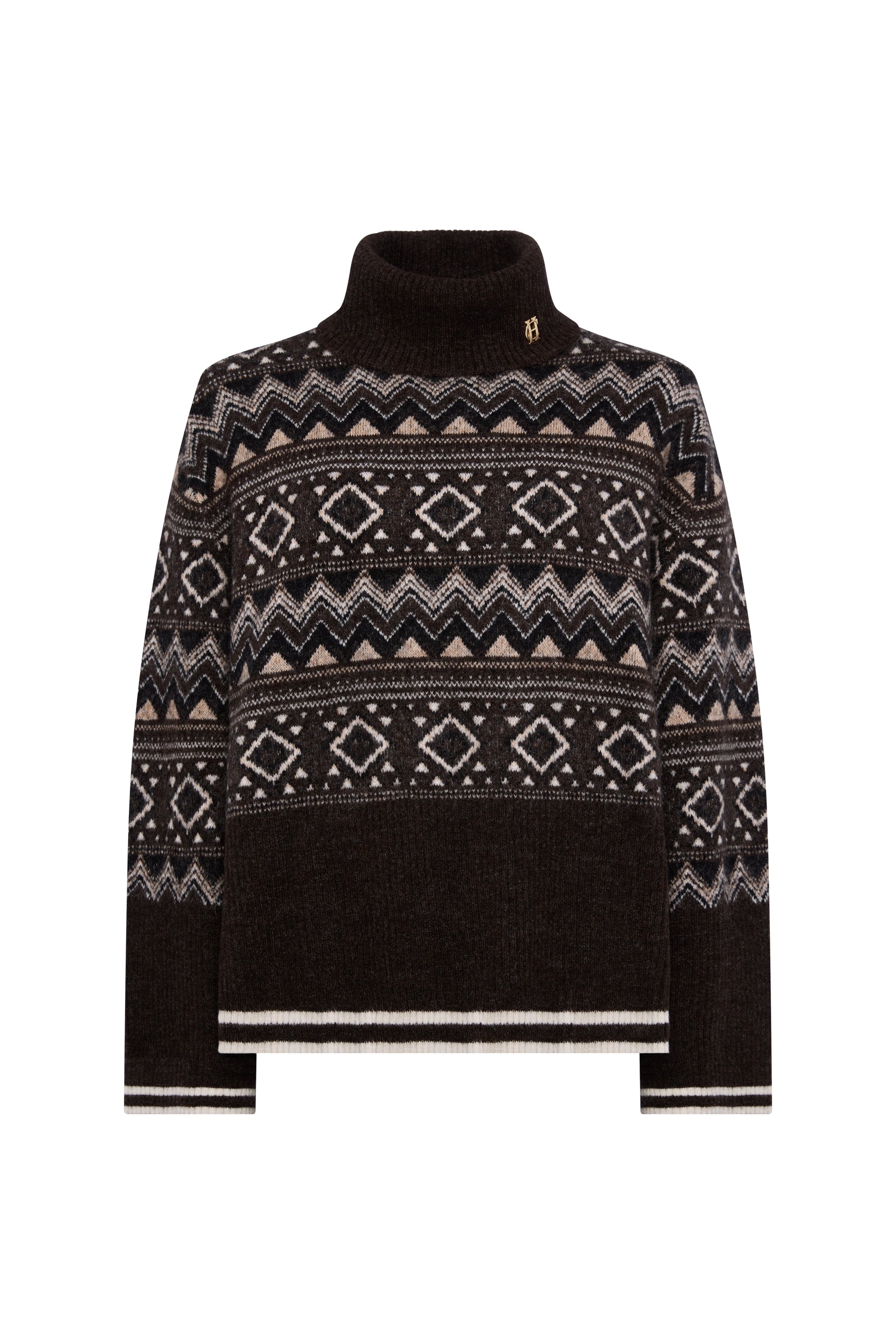 Antonia Fairisle Roll Neck Knit (Chocolate)