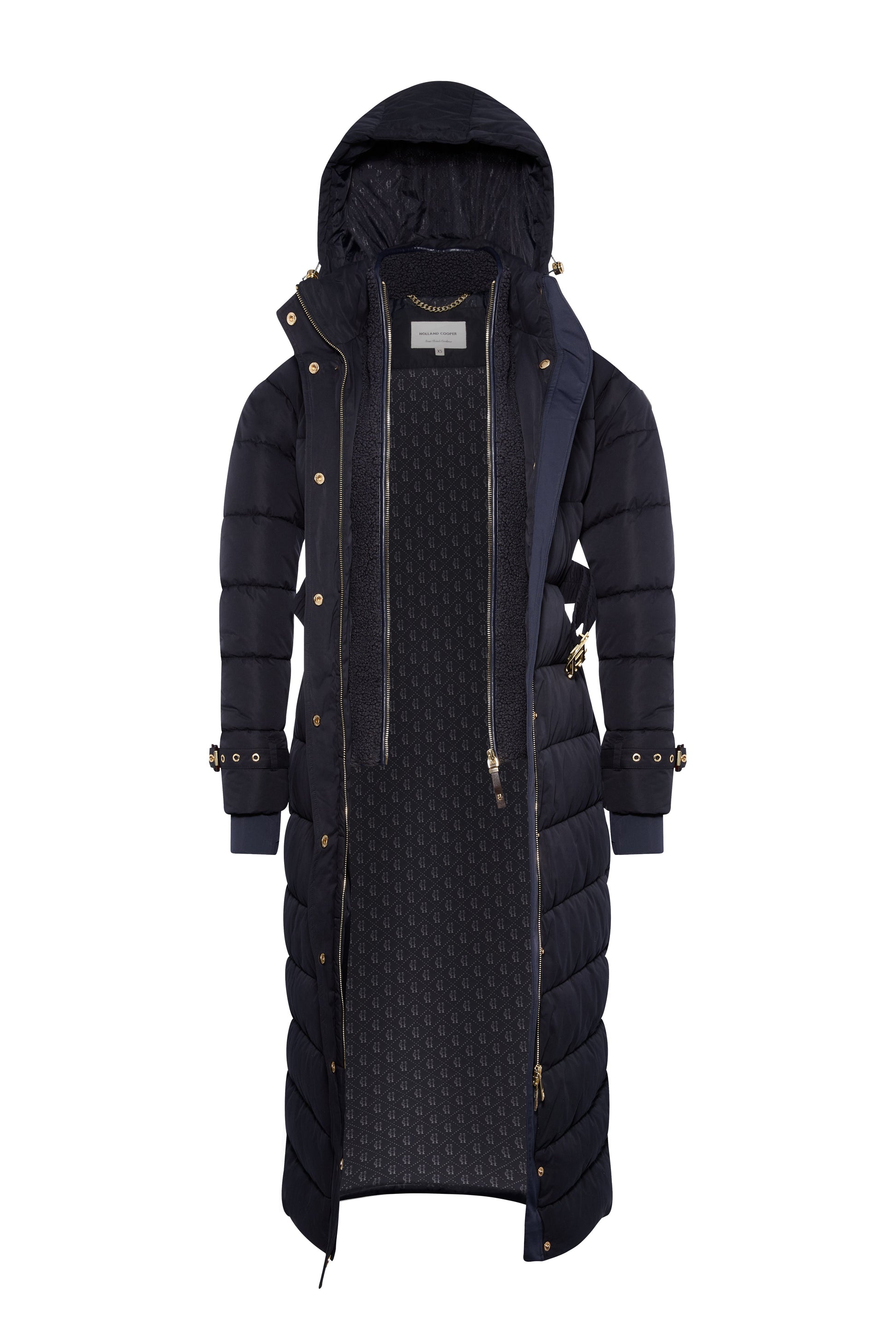 The Arosa Lux Longline Coat is designed to bring both warmth and elegance to your winter wardrobe. Cut to a full-length silhouette in supersoft fabric. it features wide padded panels for a cosy feel and a mock internal gilet for extra comfort on colder days. A matching waistbelt with a fabric buckle creates a flattering shape. while tortoiseshell buckles at the cuffs add a refined detail. Finished with a detachable hood and an embroidered sleeve badge. this coat is a timeless choice for staying stylish through the season.
