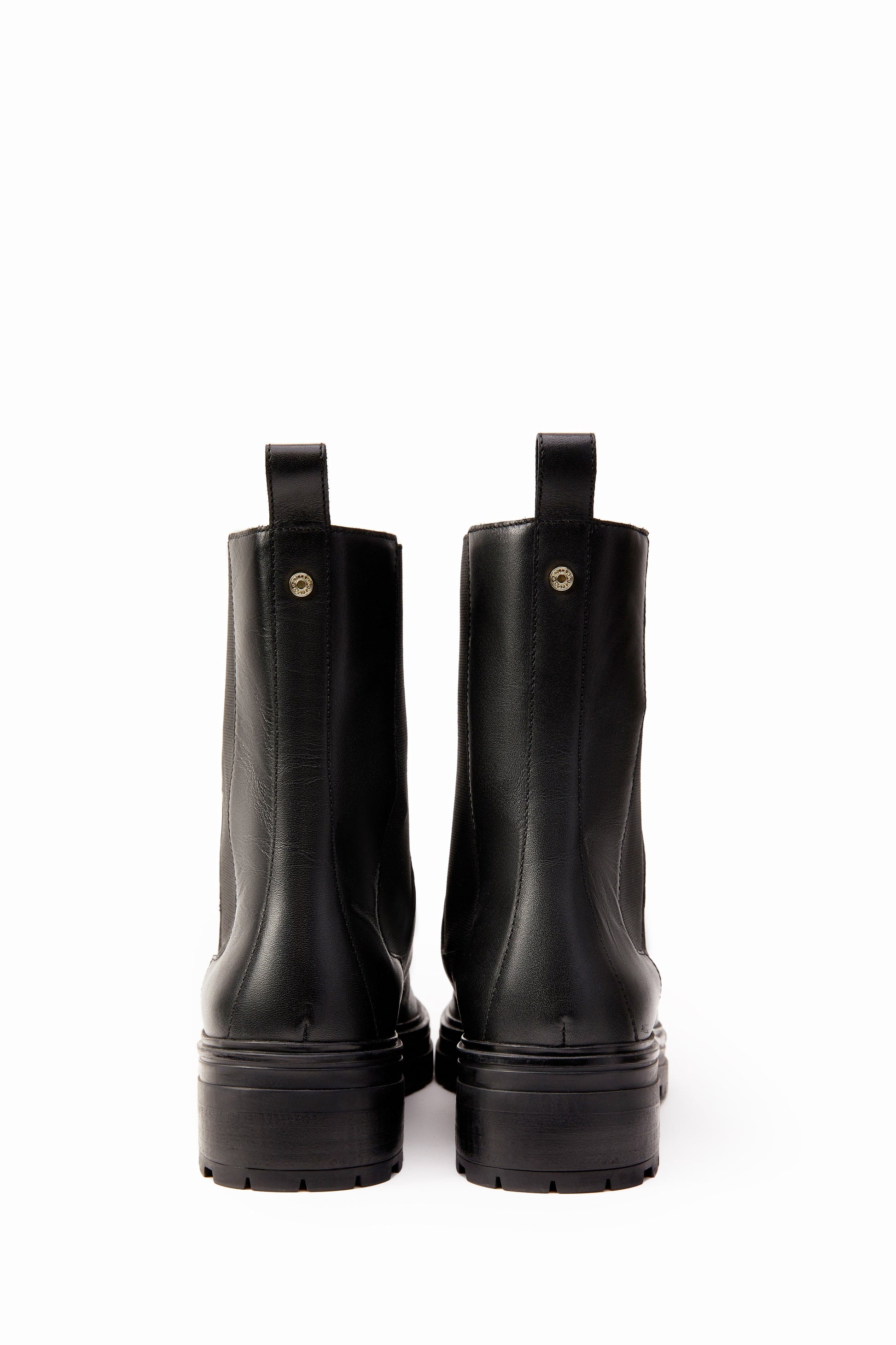 The epitome of minimalist chic. this classic ankle-length Chelsea boot has been created from a premium leather with matching lining. Designed with a classic almond toe with a chunky tracked sole. this boot ensures a comfortable & stylish wear. Subtly detailed with a delicate HC pin.