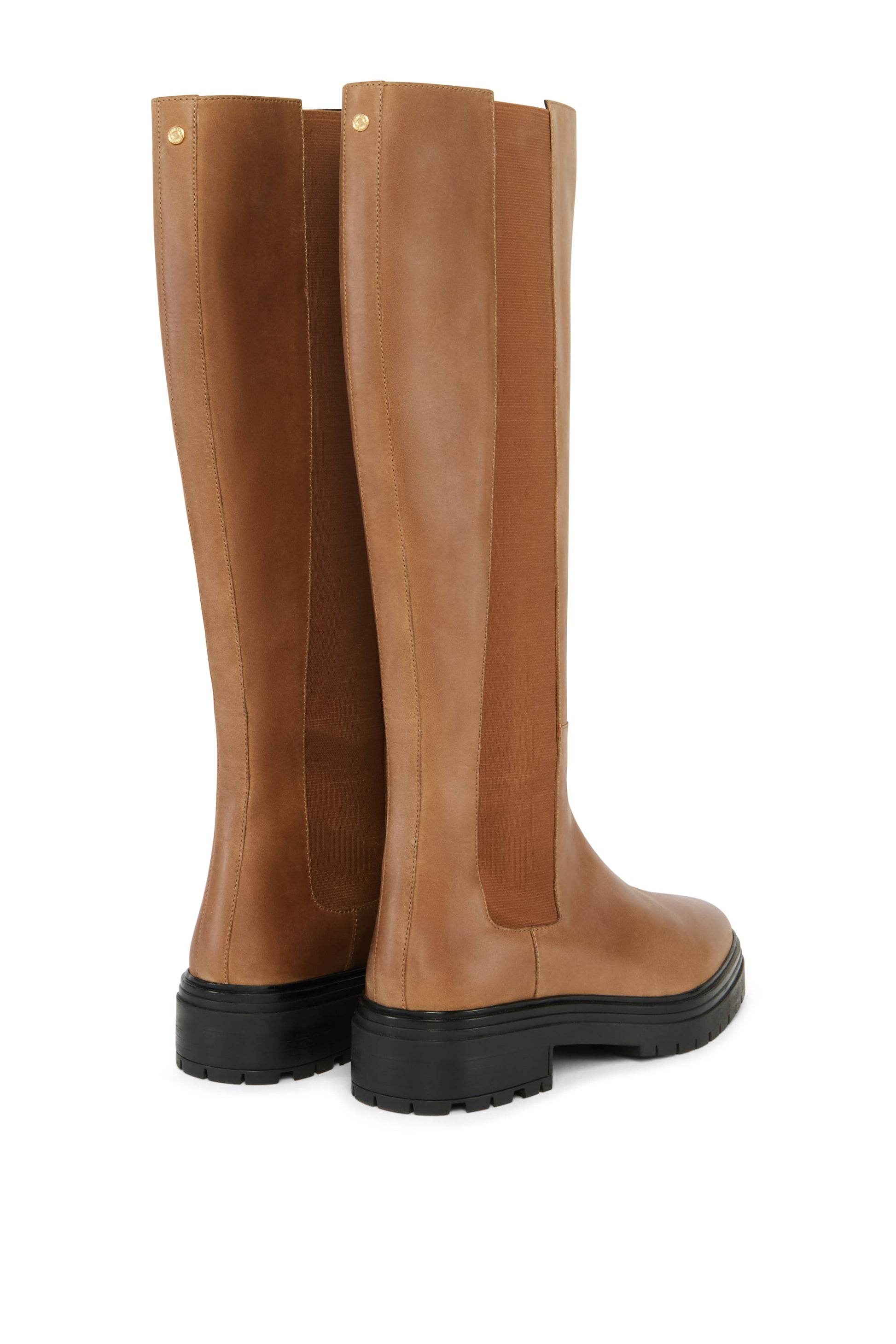 Our beautiful Astoria Boot has been reimagined in a premium pull-up leather. chosen for its rich character and vintage tan finish. Designed with tonal elastic side panels for ease and comfort. this timeless silhouette is elevated with our signature HC pin and a branded cleated outsole for durability and grip. A refined essential. perfect for everyday styling with a heritage twist.