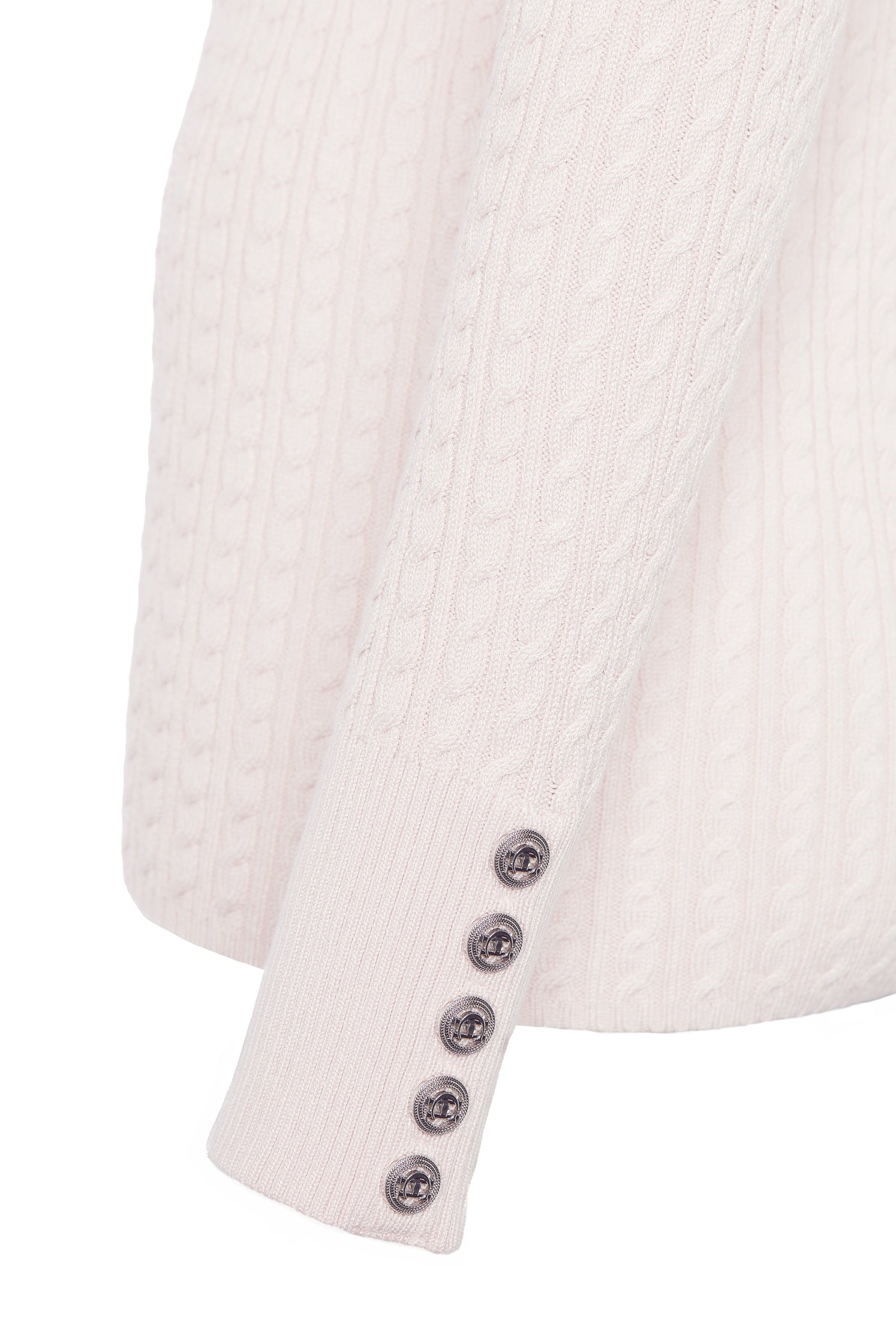 Crafted from a luxurious super soft yarn. this jumper ensures a sumptuously cosy feel against your skin. With an intricate cable design with a slim silhouette. the monogrammed henley zip offers versatility in styling. Beautifully elevated with silver hardware on the cuffs.