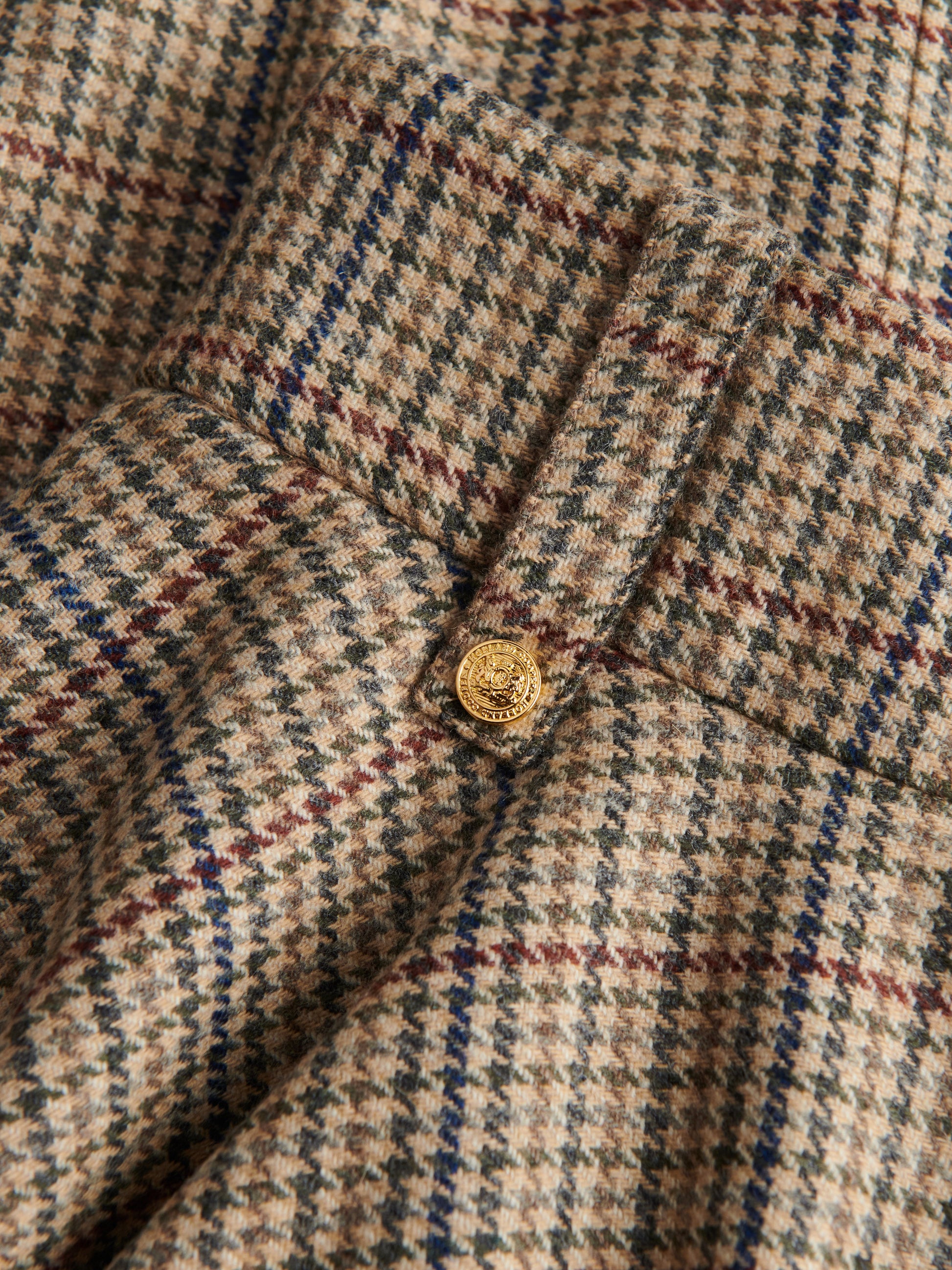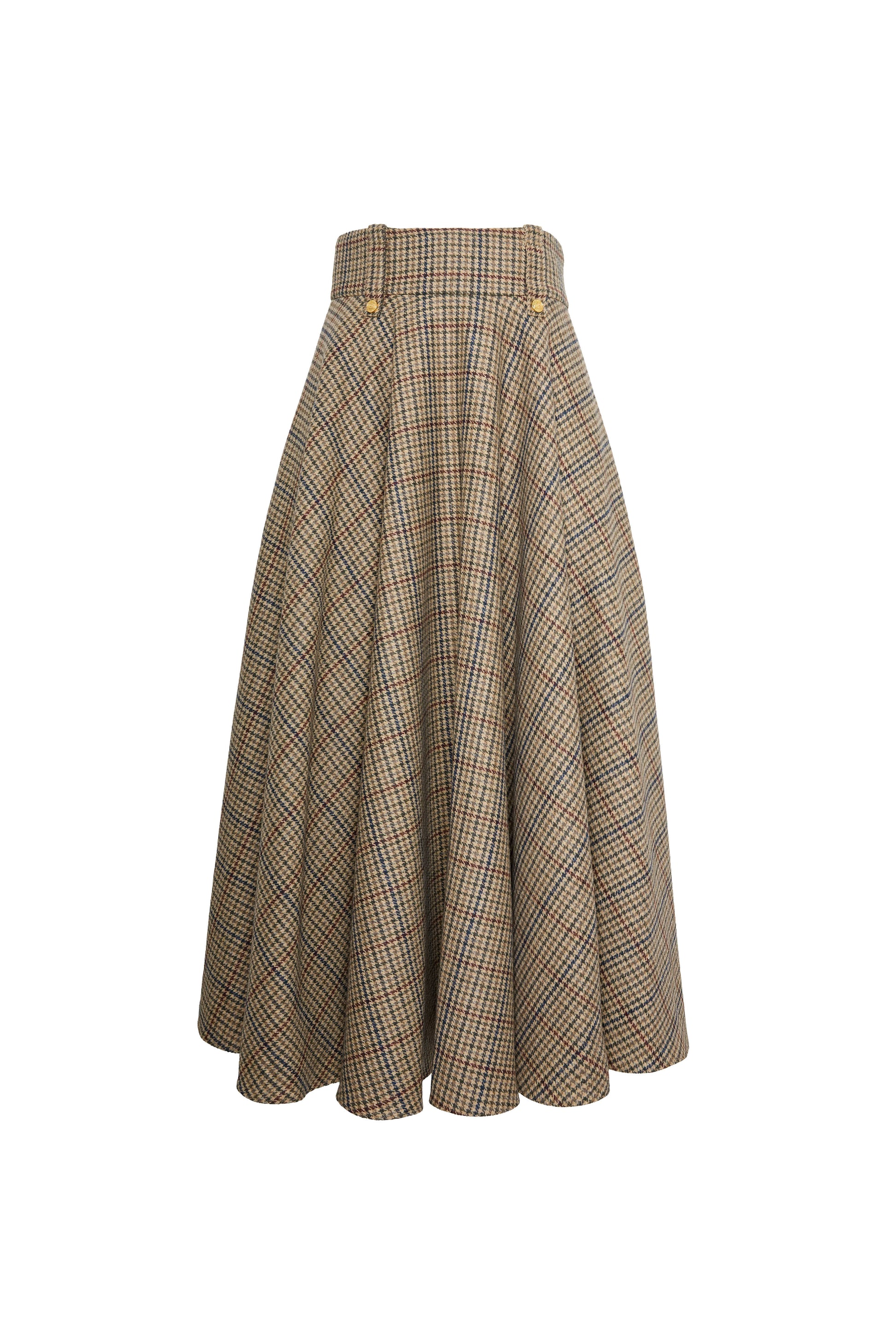 The Aynhoe Full Length Skirt. part of the Lydia Millen Collection. is tailored in the exclusive Millen Gordon Tweed. created especially for this collaboration and inspired by Lydia's English country garden. Designed with a flattering high waist and sweeping circular cut. it moves beautifully with every step. Practical side pockets are detailed with our heraldic HC branding. while belt loops with signature rivets allow for a flattering. cinched waist. Finished with a centre-back zip and double button fastening. this unlined piece combines heritage tweed with modern femininity �a skirt designed to be cherished season after season.