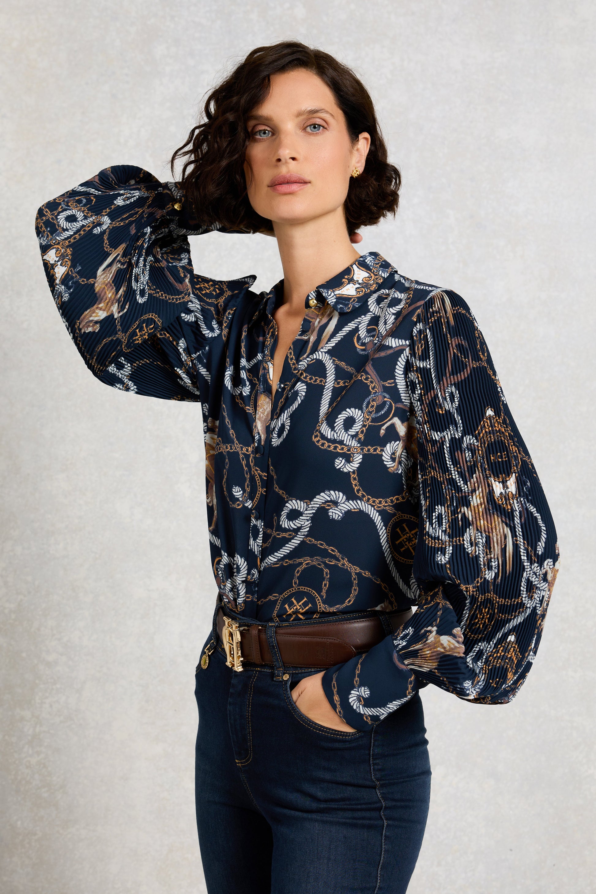 A refined take on statement shirting. the Beau Shirt features our exclusive country horsebit print. bringing a heritage-inspired charm to this timeless silhouette. Crafted from lightweight fabric with a classic fit. it's designed with a softly curved collar and a full front placket detailed with self-covered buttons for a seamless finish.