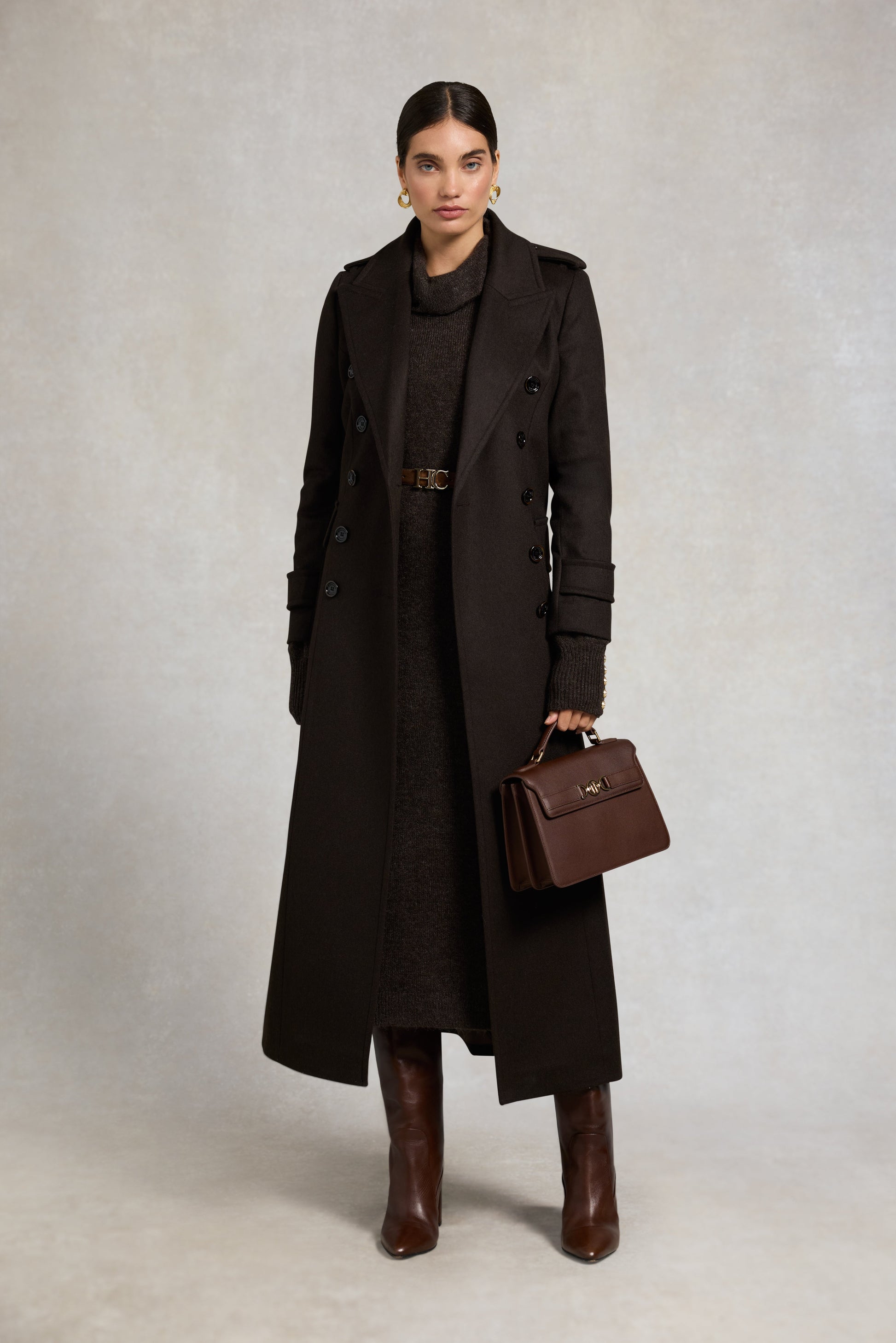 Designed to fall loosely over your silhouette. this dress has been crafted from a soft wool blend. With voluminous sleeves with a ribbed cuff finish. the subtle roll neck ensures a classic. yet contemporary fit. Complimented by our iconic gold hardware.