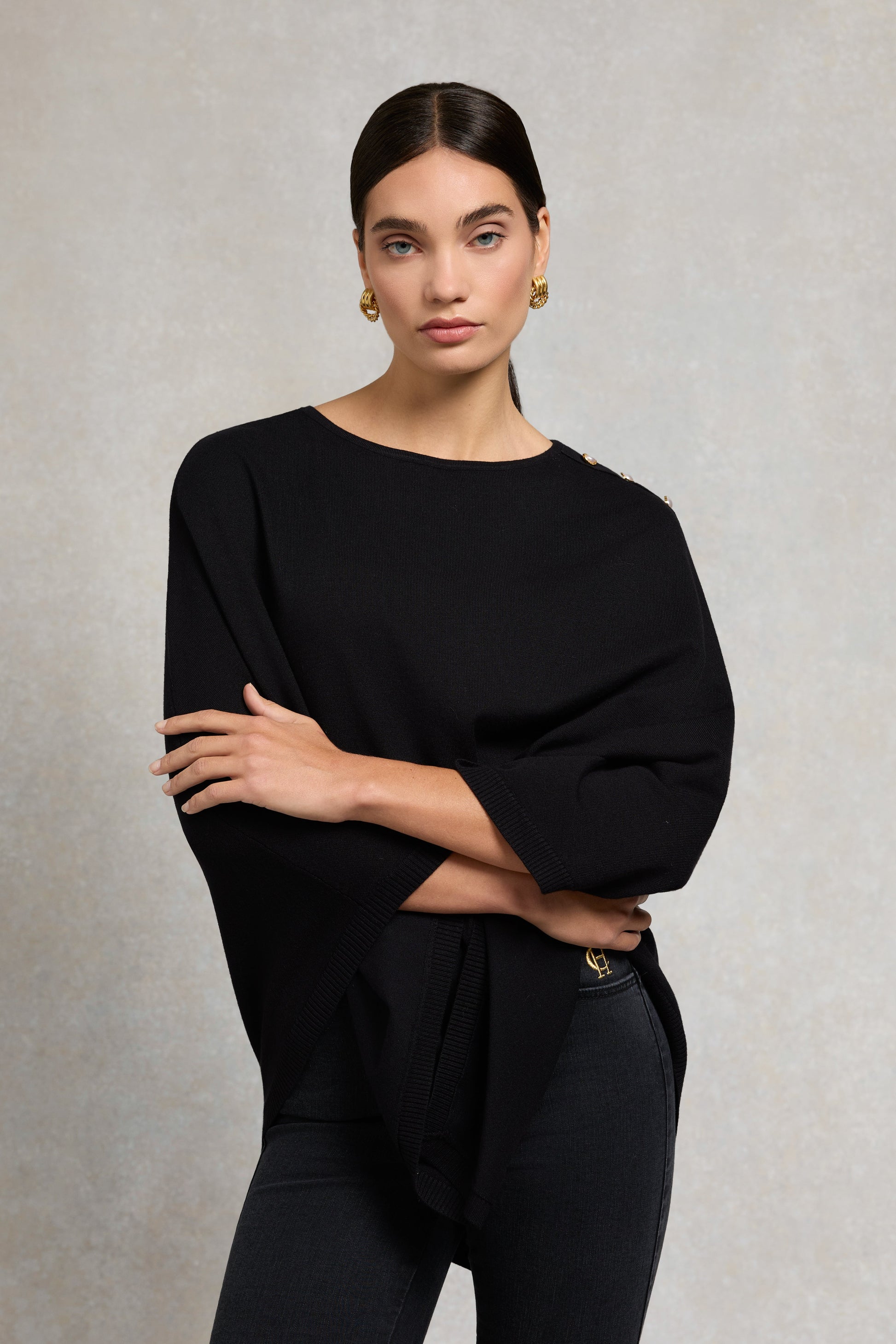 Effortlessly elegant. the Boat Neck Cape has been designed to elevate any look with its refined silhouette and luxurious drape. Featuring a timeless boat neckline and soft. flowing shape. it's adorned with delicate pearl HC rivets that lend a signature touch. Cut in a one-size fit. this piece layers beautifully. making it a versatile addition to your wardrobe.