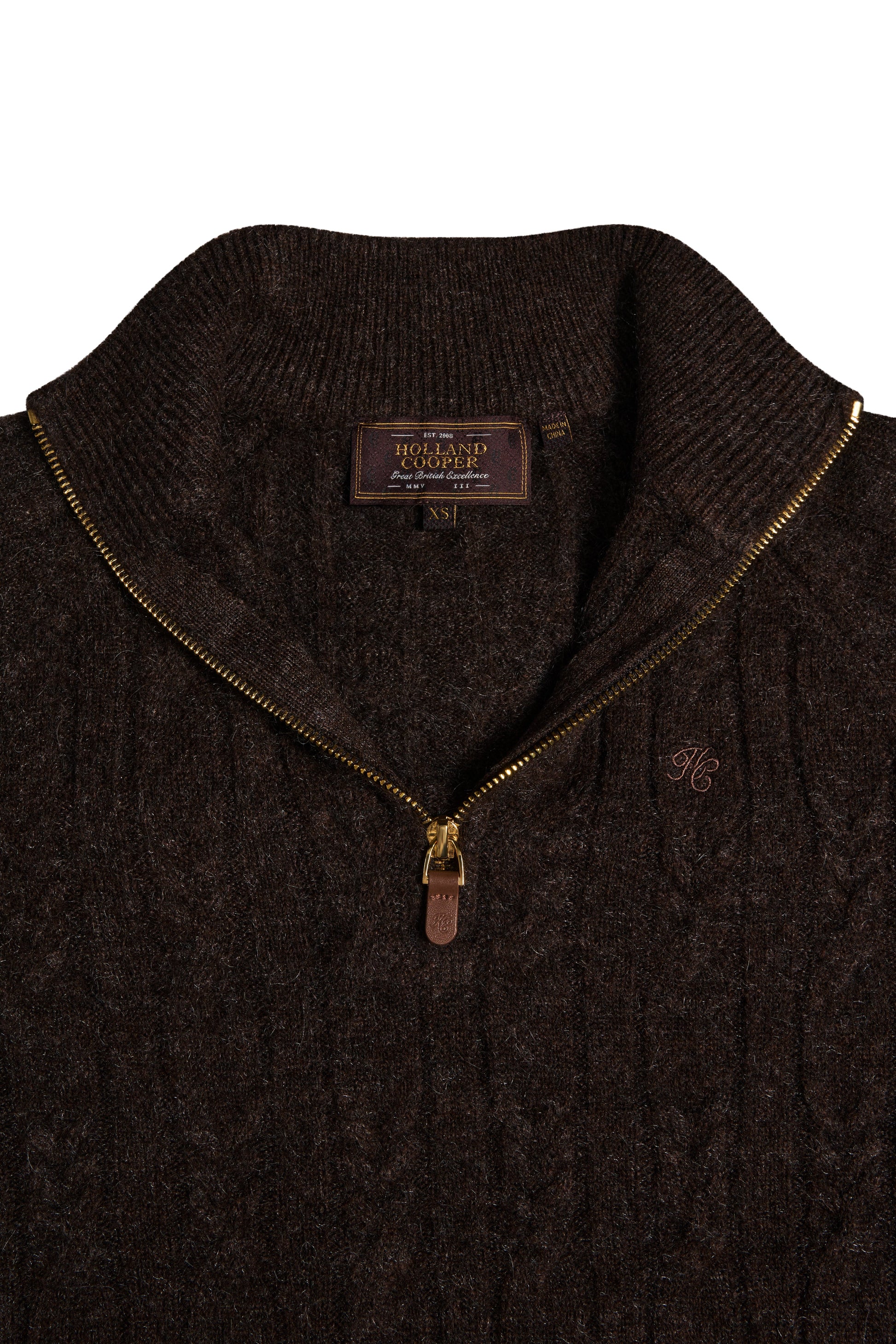 Crafted from a soft mohair blend. this knit features a quarter zip framed by delicate cabling. while raglan sleeves and slim-fitting arms create a flattering. modern silhouette. Subtle hardware at the cuffs and a concealed zipper add refined finishing touches. making this knit the perfect wardrobe essential for layering in cooler seasons.