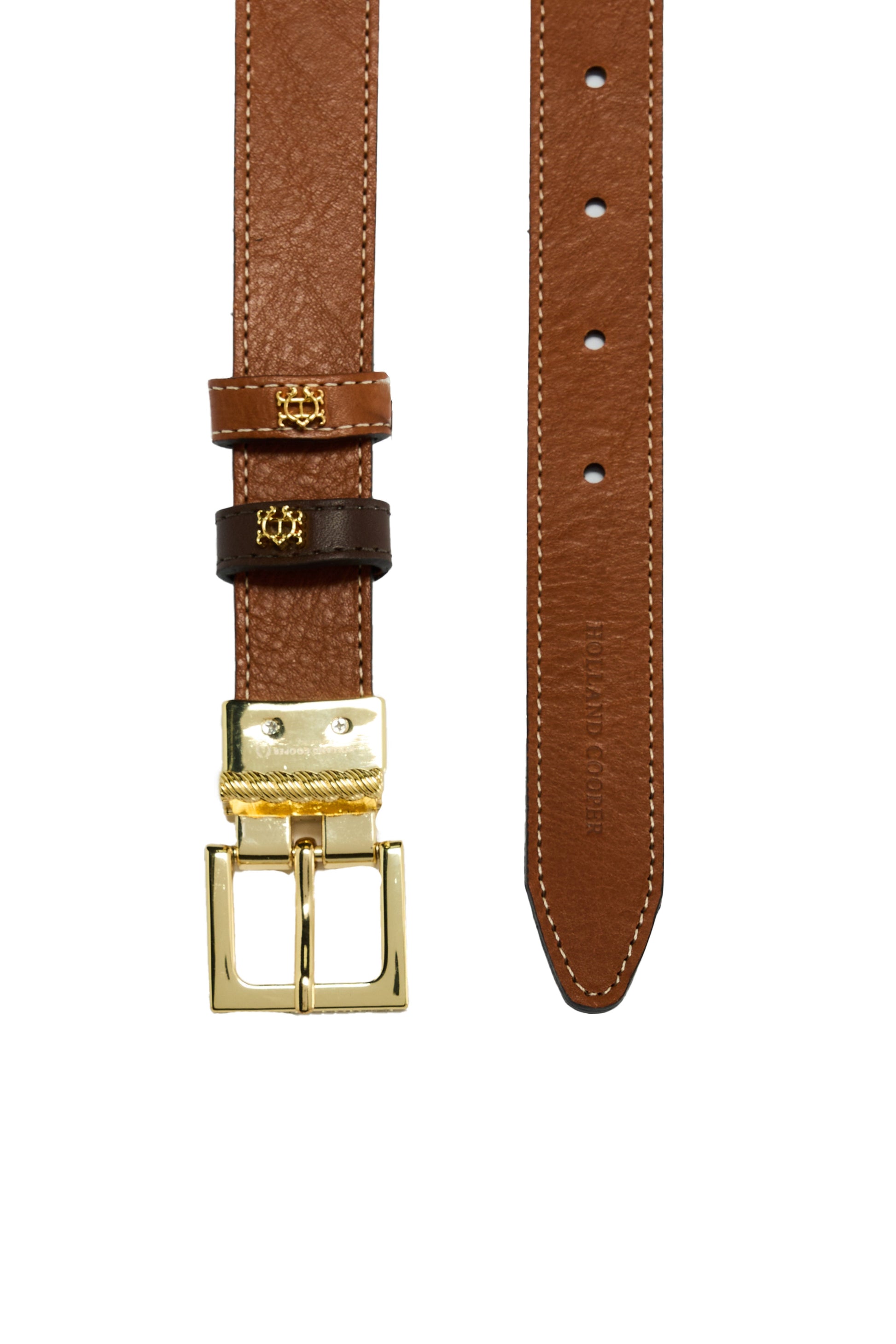 Handcrafted in the UK from premium leather. the reversible Buckingham Slim Belt is finished with our signature high-shine gold hardware. including a beautifully detailed rope-effect keeper that reflects our dedication to sophisticated. equestrian-inspired style. A true wardrobe essential. this tan and chocolate belt will elevate your look with understated opulence.