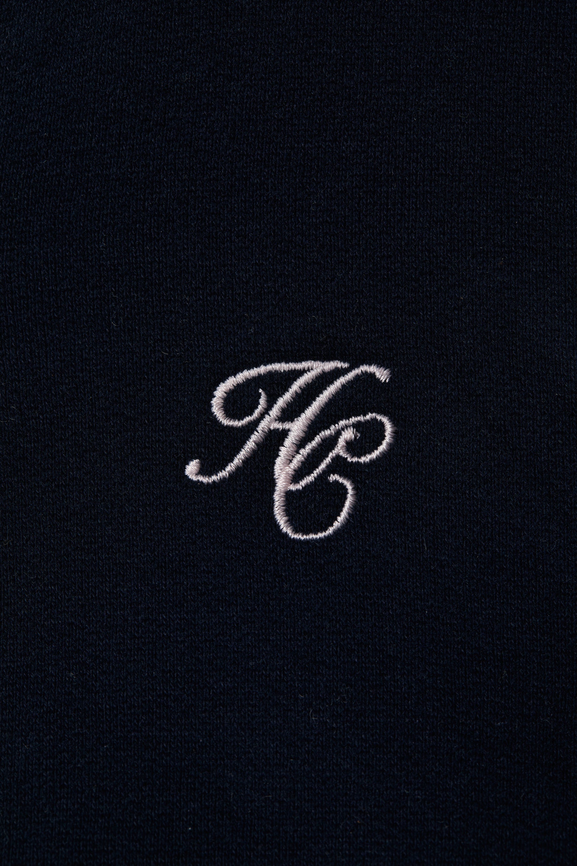 This refined sweater features sophisticated details including contrast embroidery at the chest and a distinctive striped knitted rib collar. The raglan sleeve construction ensures a comfortable. natural fit while ribbed cuffs and hem create a polished silhouette. An essential piece that seamlessly bridges smart and casual occasions.