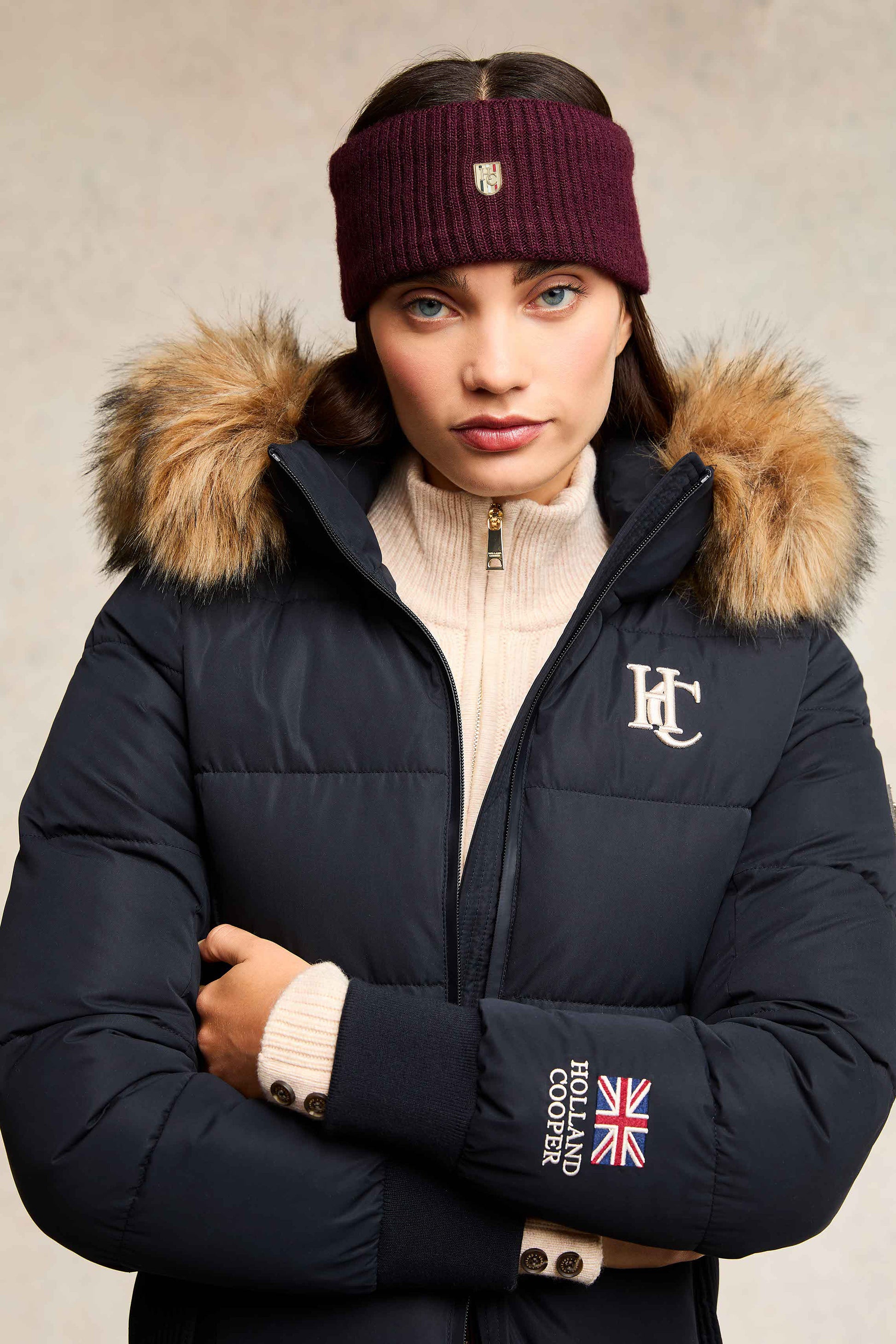 Created from delicate & subtle yarns. this knitted headband has been beautifully designed with a sophisticated ribbed texture. A dynamic design. this headband can be worn with the logo central or to one side depending on your preference. Detailed with our new gold & enamel trims. this accessory is an essential for every rider.