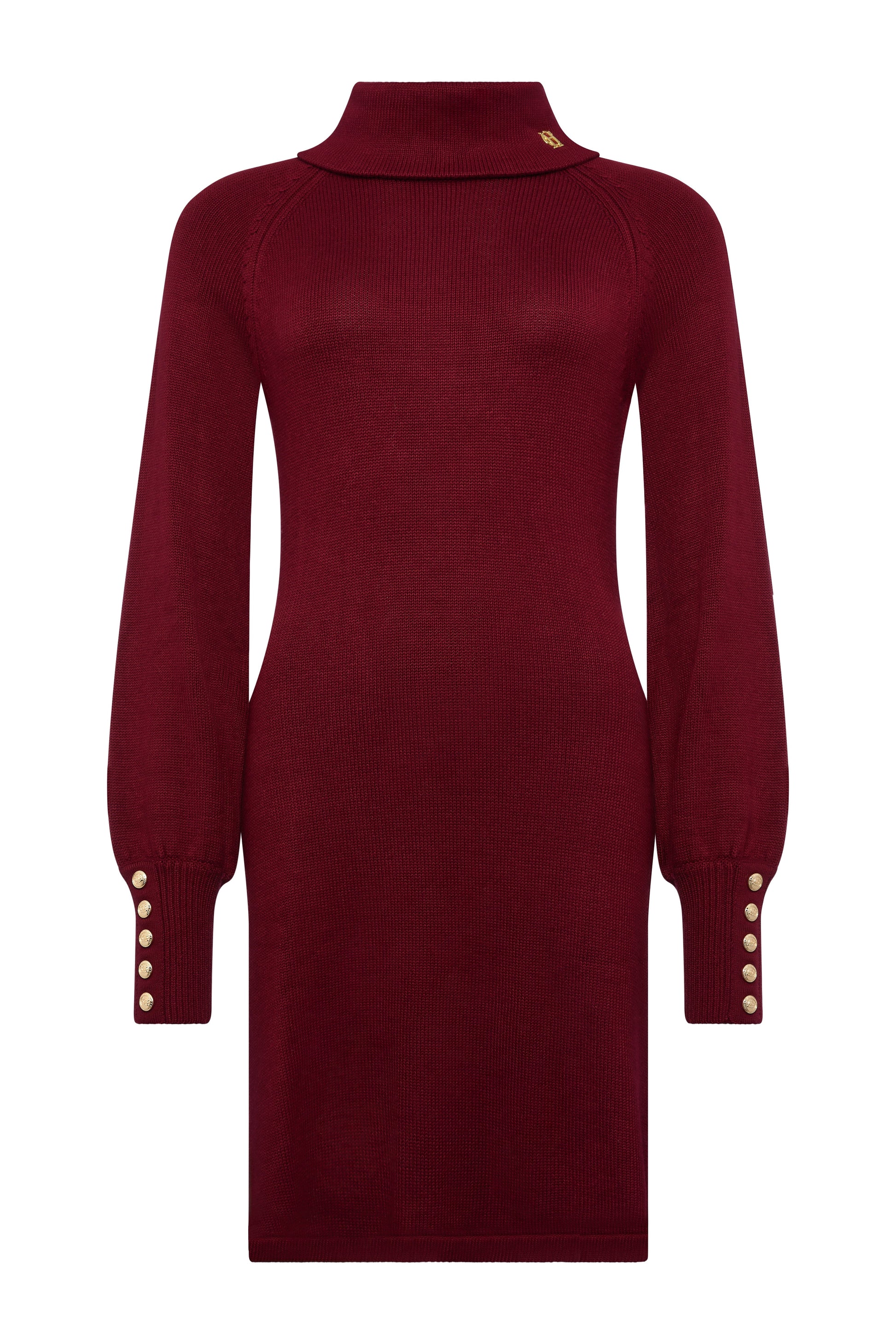 Crafted from soft viscose yarn. the Chamonix Dress offers a flattering fit-and-flare silhouette. perfect for both casual and sophisticated occasions. The plain knit construction ensures a cozy feel. while the tailored set-in sleeves and slightly fluted cuffs add elegance and movement. The roll neck provides warmth and timeless style. making this dress a versatile wardrobe staple.