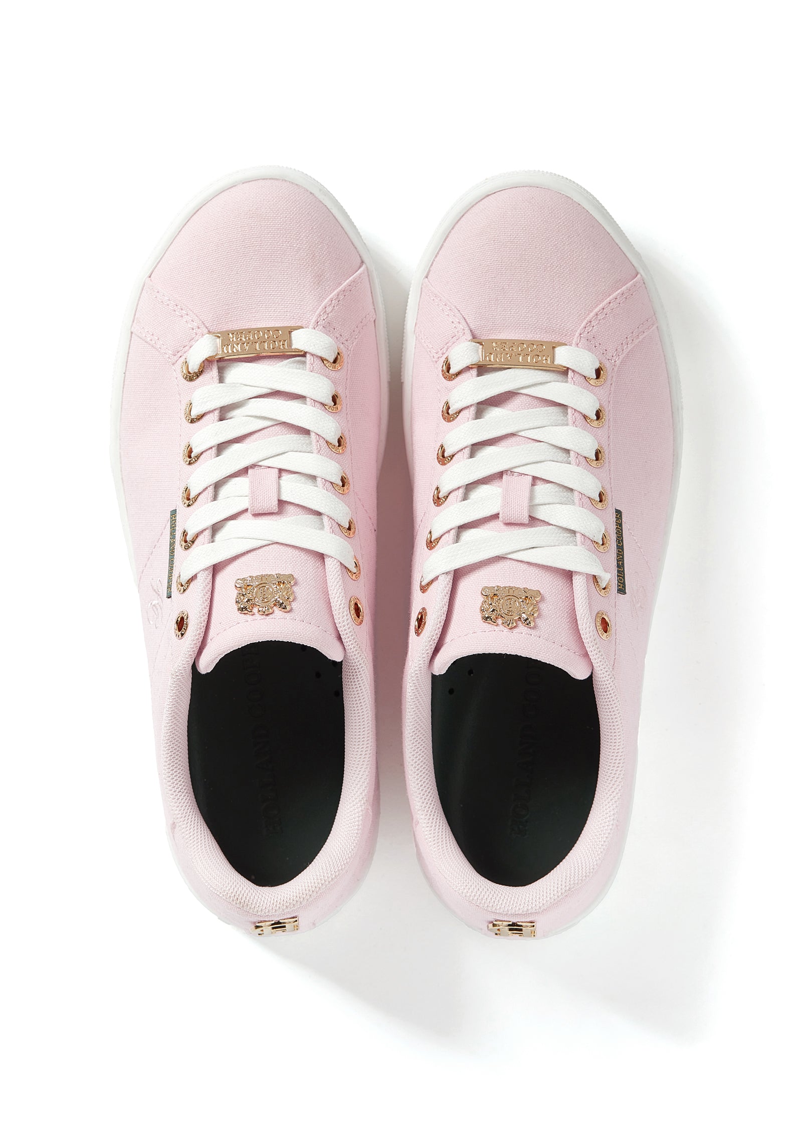 Crafted with a premium cotton canvas. these trainers have been designed to become an everyday piece in your wardrobe. Featuring quarter panel embroidery for a touch of sophistication. the classic gold hardware adds a luxurious element. elevating these trainers from casual to chic. With a fully branded outsole. every step you take makes a statement of quality and authenticity.