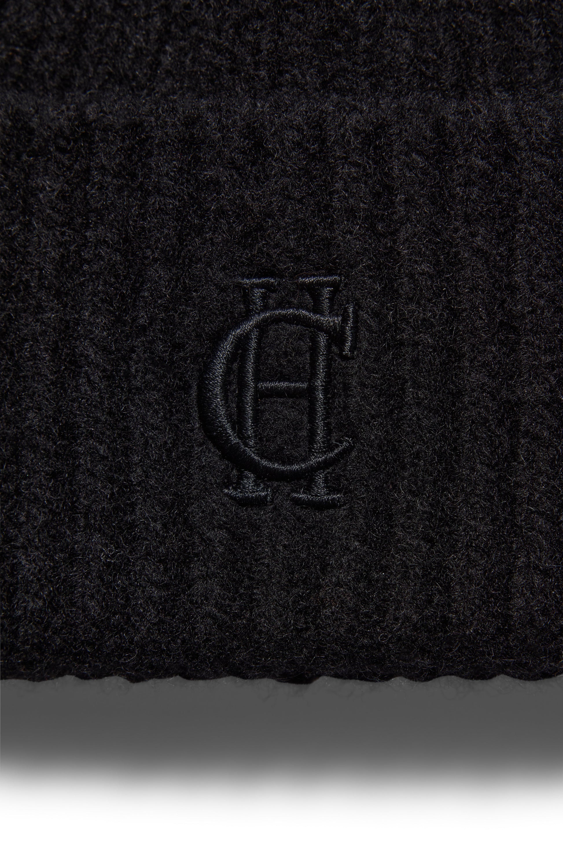 A brand-new style for the season. this beanie hat is crafted from a thick. fluffy wool-blend yarn for warmth and comfort. Designed in a chunky rib with a slightly oversized fit. it features high-detail embroidery on the turn-back cuff. adding a signature HC touch. Available in premium seasonal colours. this versatile hat is perfect for elevating cold-weather outfits with effortless style.