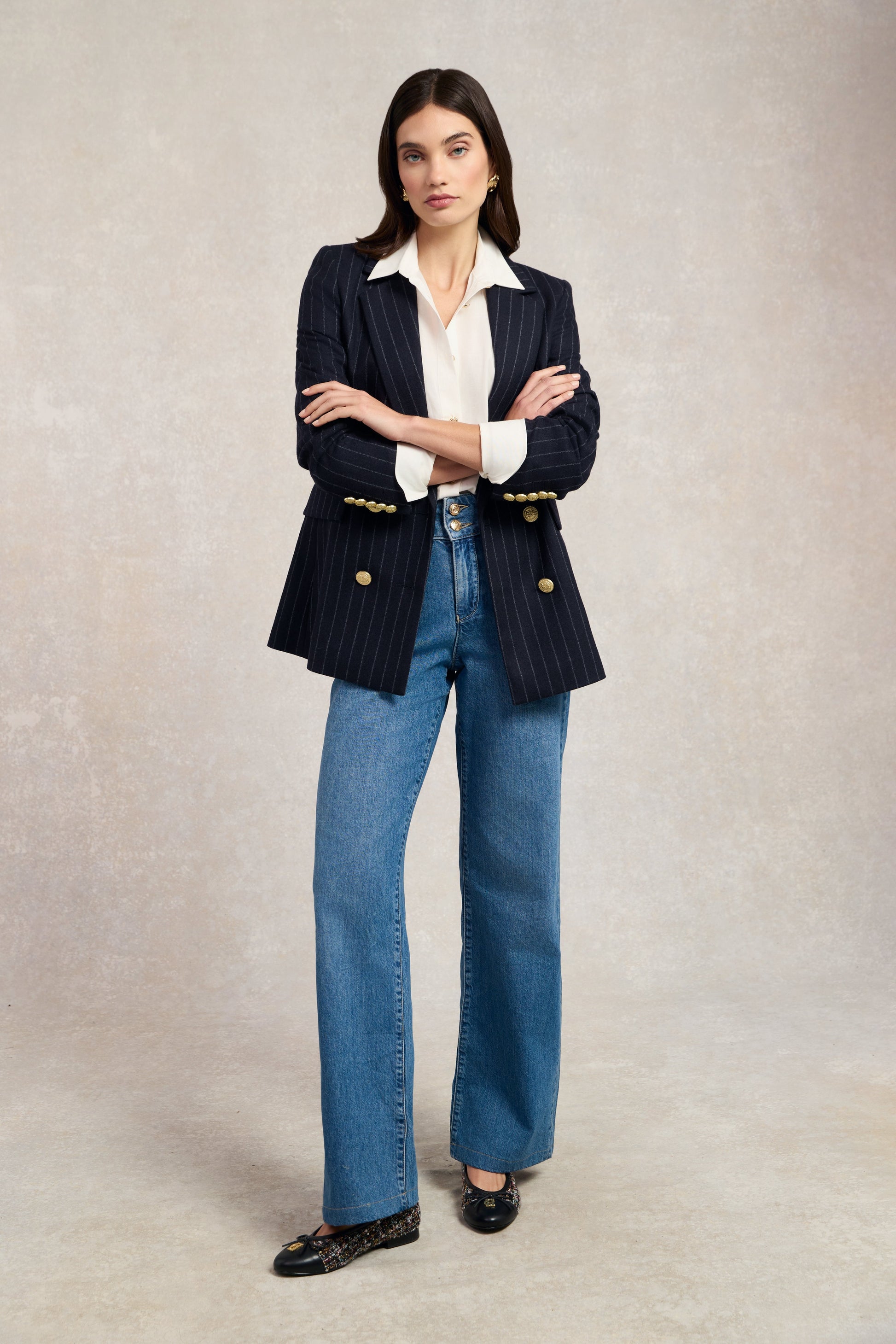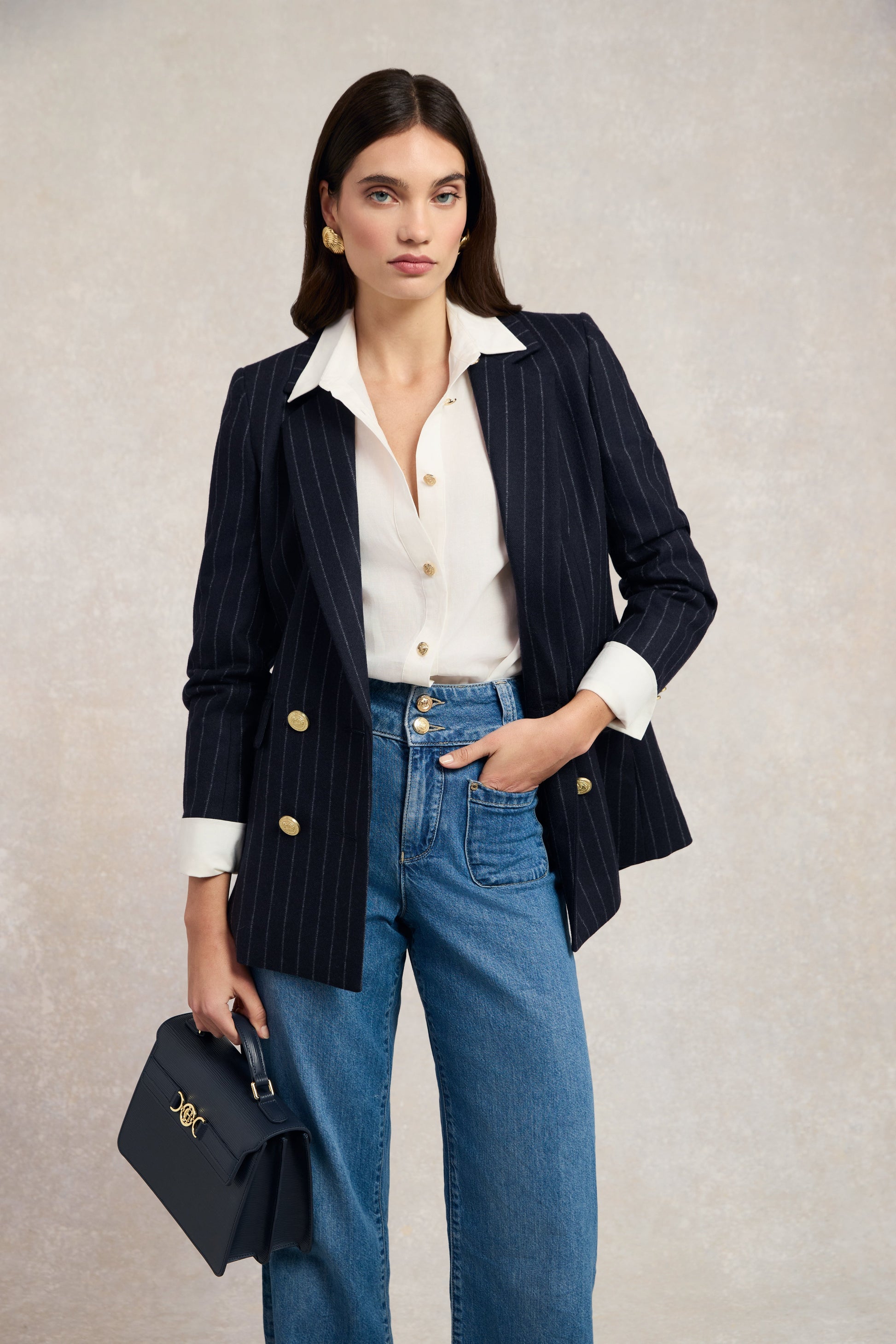 A beautifully relaxed fitting classic shirt. perfect for every woman's wardrobe. this piece has been elegantly designed with french interior seams and pleated back for volume. Detailed with a single button cuff and signature metal hardware. this shirt is both timeless and versatile.