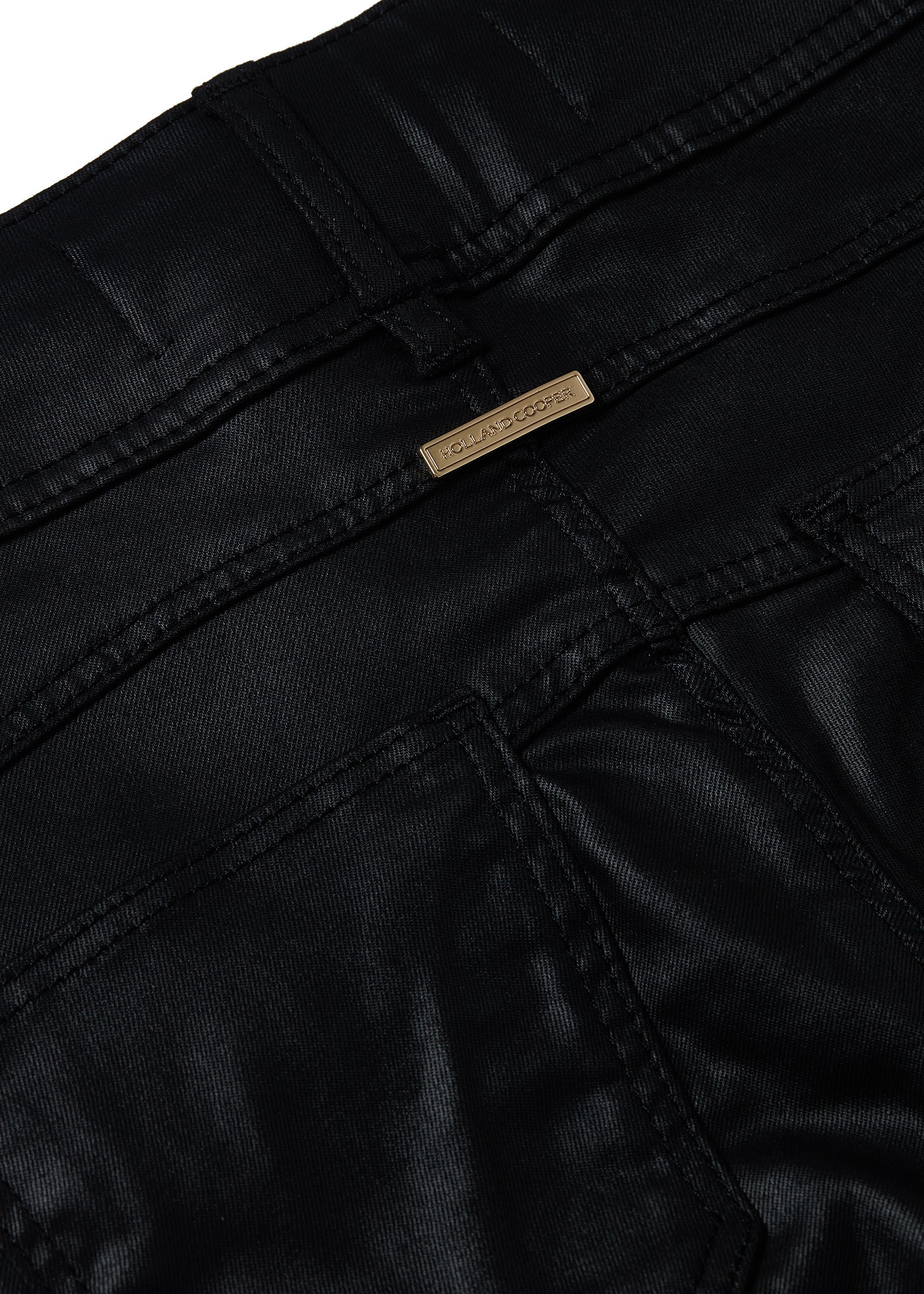 Coated to resemble leather. this coated biker jean is woven with stretch for a flexible fit and has a flattering high-rise waist. Designed to sit high on the waist but cleverly designed to ensure they do not cut in. Tuck your sweater or blouse into the sculpting high-rise waist for an extra stylish look and feel.