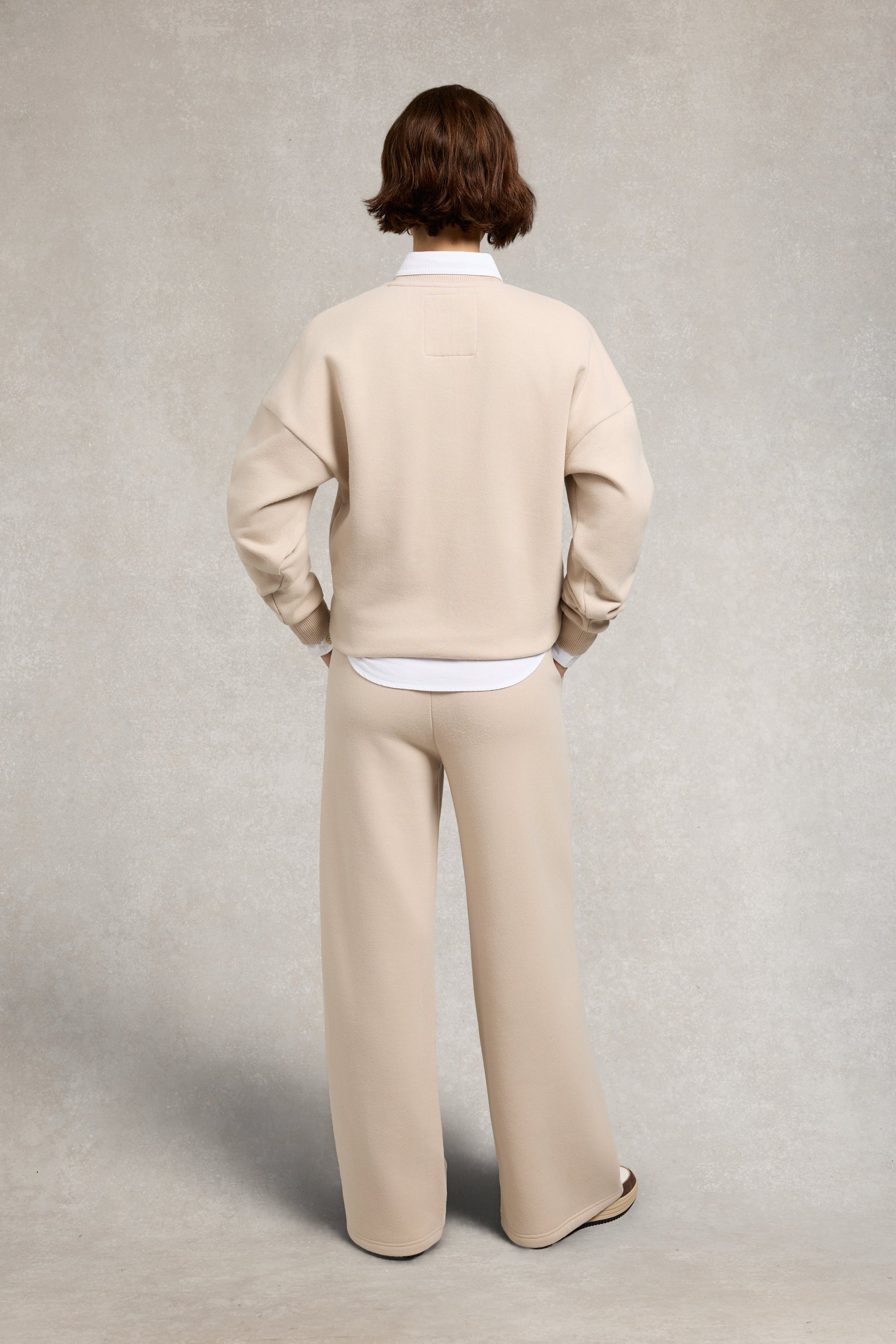 Combining laid-back comfort with a refined finish. the Collegiate Jogger is designed in a soft. luxurious fabric that feels as good as it looks. The wide-leg silhouette adds a modern edge. while the elasticated waistband and discreet side seam pockets ensure everyday ease. Finished with high-build embroidery at the hip. this piece is perfect when paired with the matching Relaxed Fit Crew Neck Sweat for a coordinated off-duty look.
