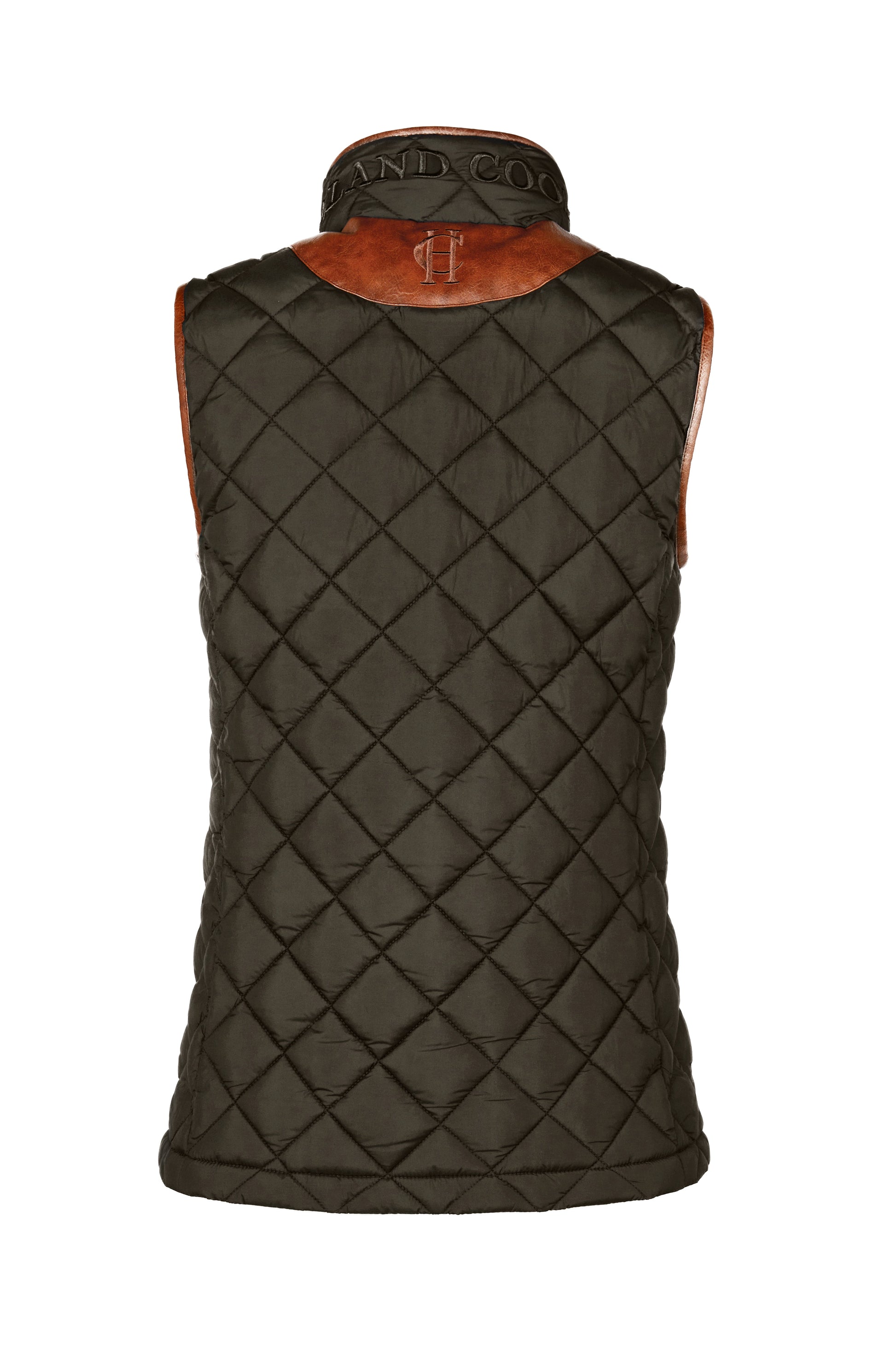 Beautifully designed to be a slim fit. short length gilet. lightly filled with Sorona® eco fill. Detailed with faux leather piping around the edges and finished with our antique brass fastenings and HC embroidery to the collar. This timeless classic is needed in every wardrobe and is perfect for layering.