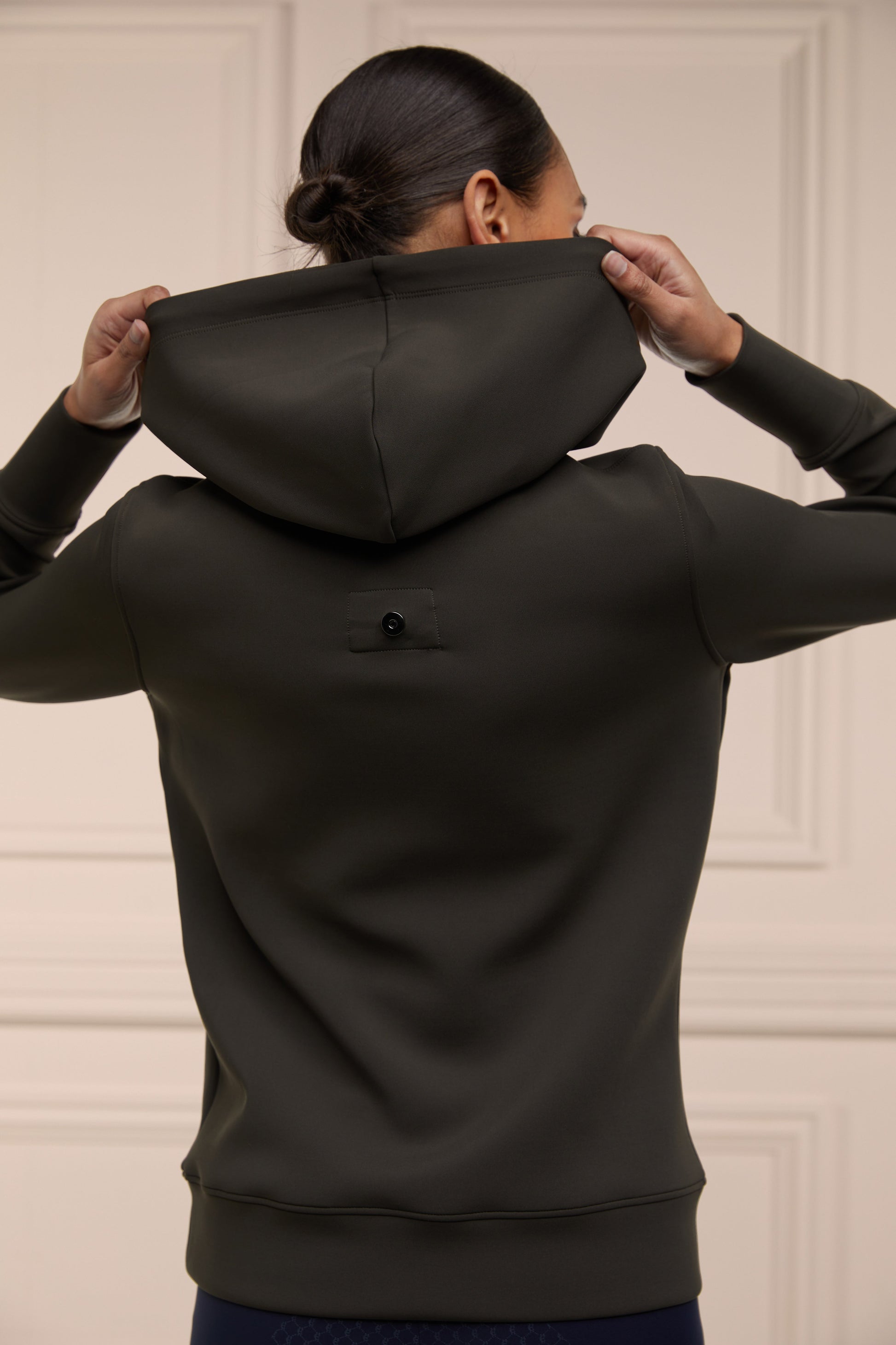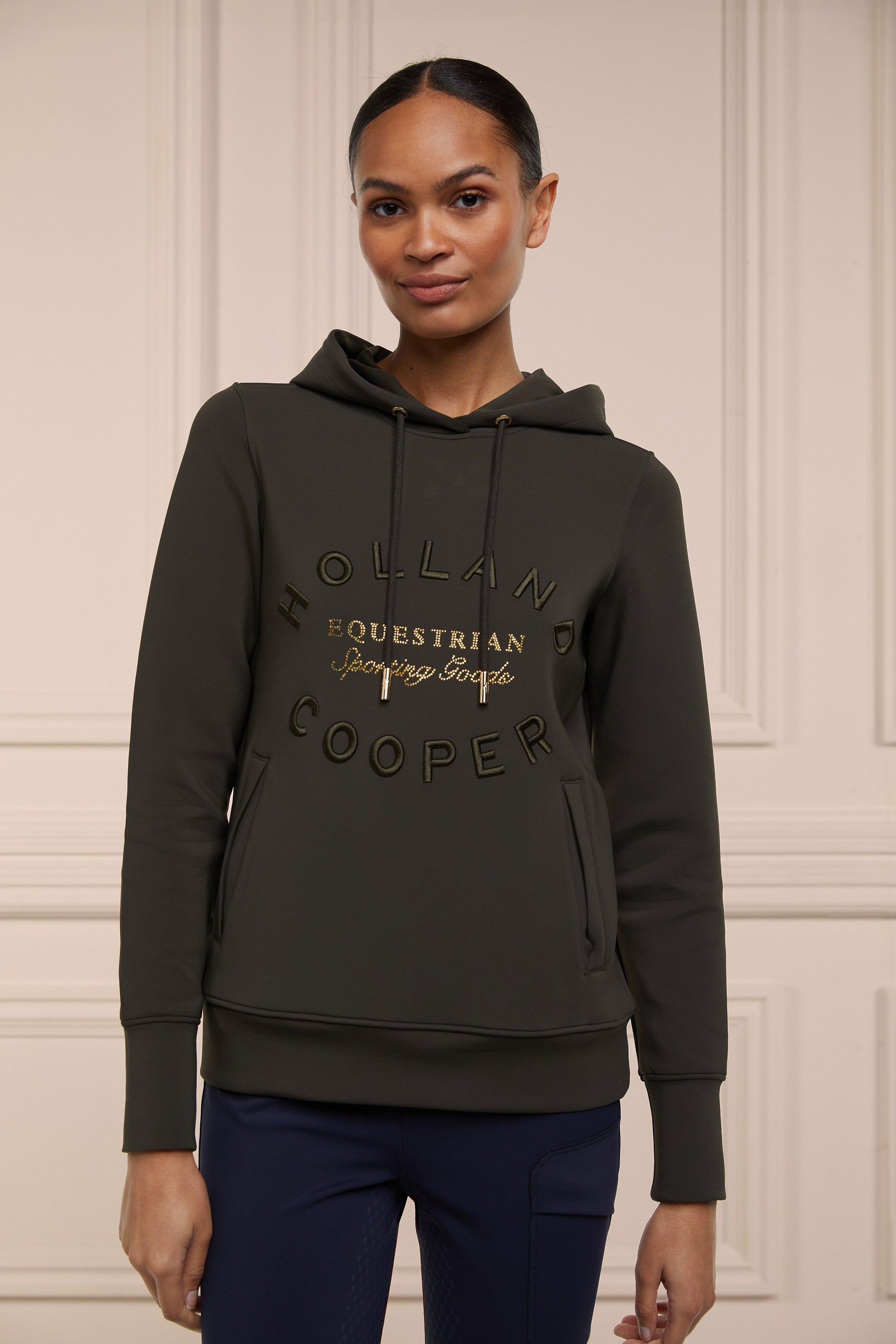 Crafted from a smooth. soft-touch fabric. this hoodie is meticulously designed for a relaxed fit. Featuring set-in sleeves and tubular drawcords with monogram gold aglets. the high-build embroidery with a feature crystal branding on the chest elevates this casual piece.