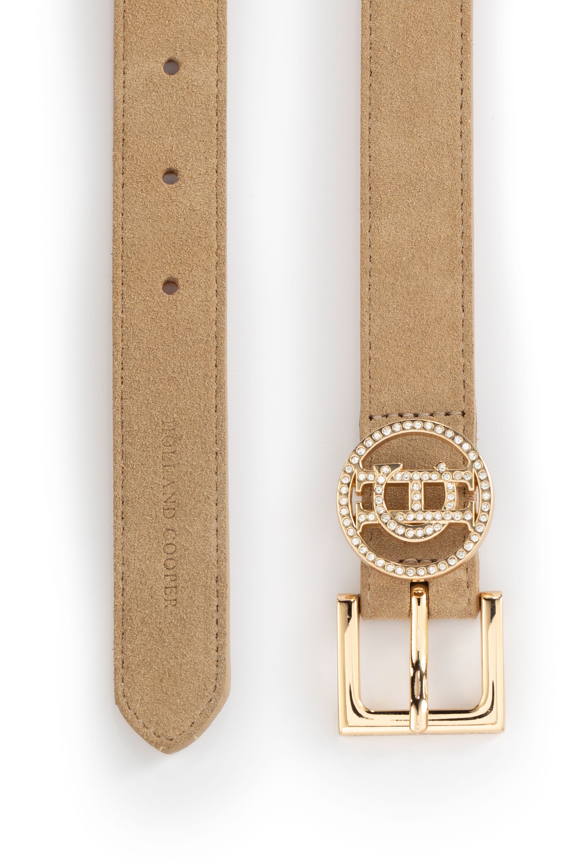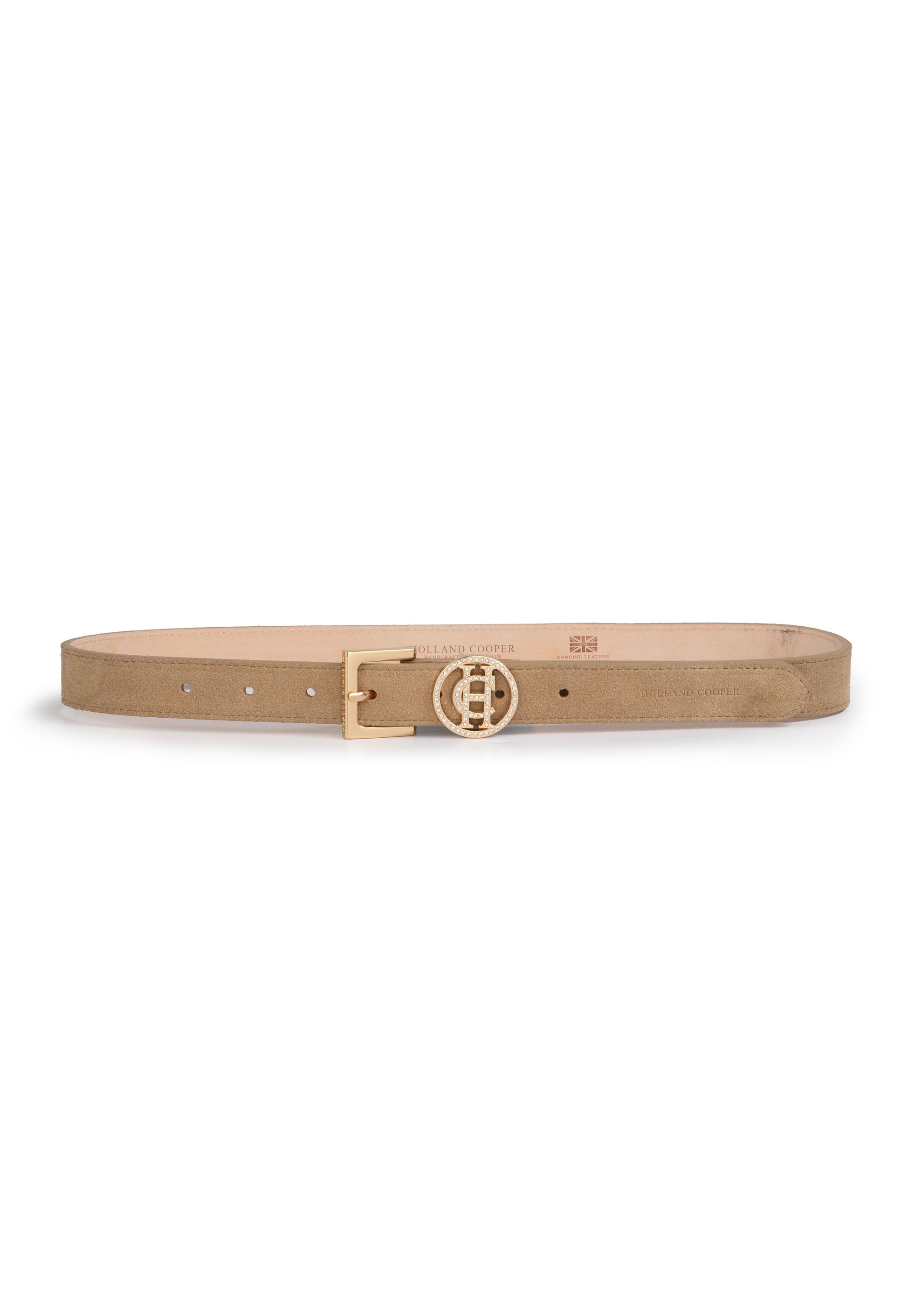A standout feature is the new HC diamanté-studded belt keeper. adding a touch of sparkle to its refined design. Lined with classic nubuck and finished with debossed branding. this belt combines craftsmanship and glamour. making it an essential addition to your wardrobe.