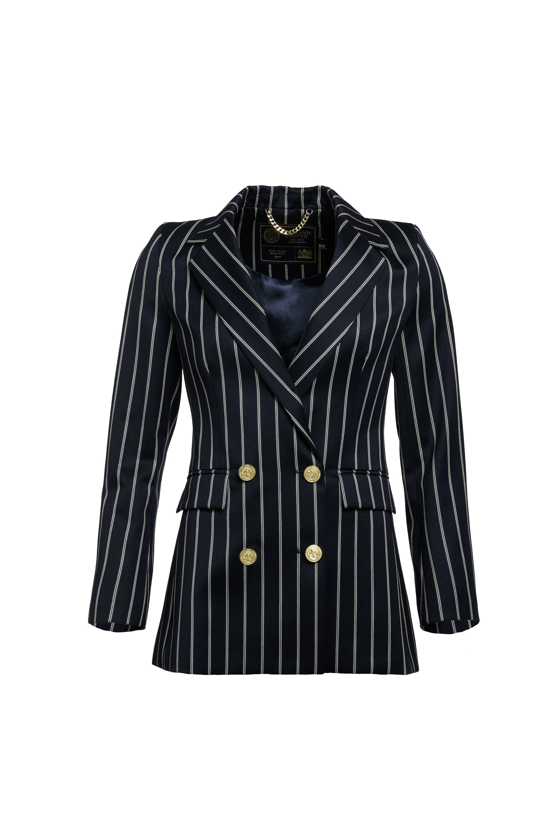 Double Breasted Blazer (Ink Navy Wide Stripe)