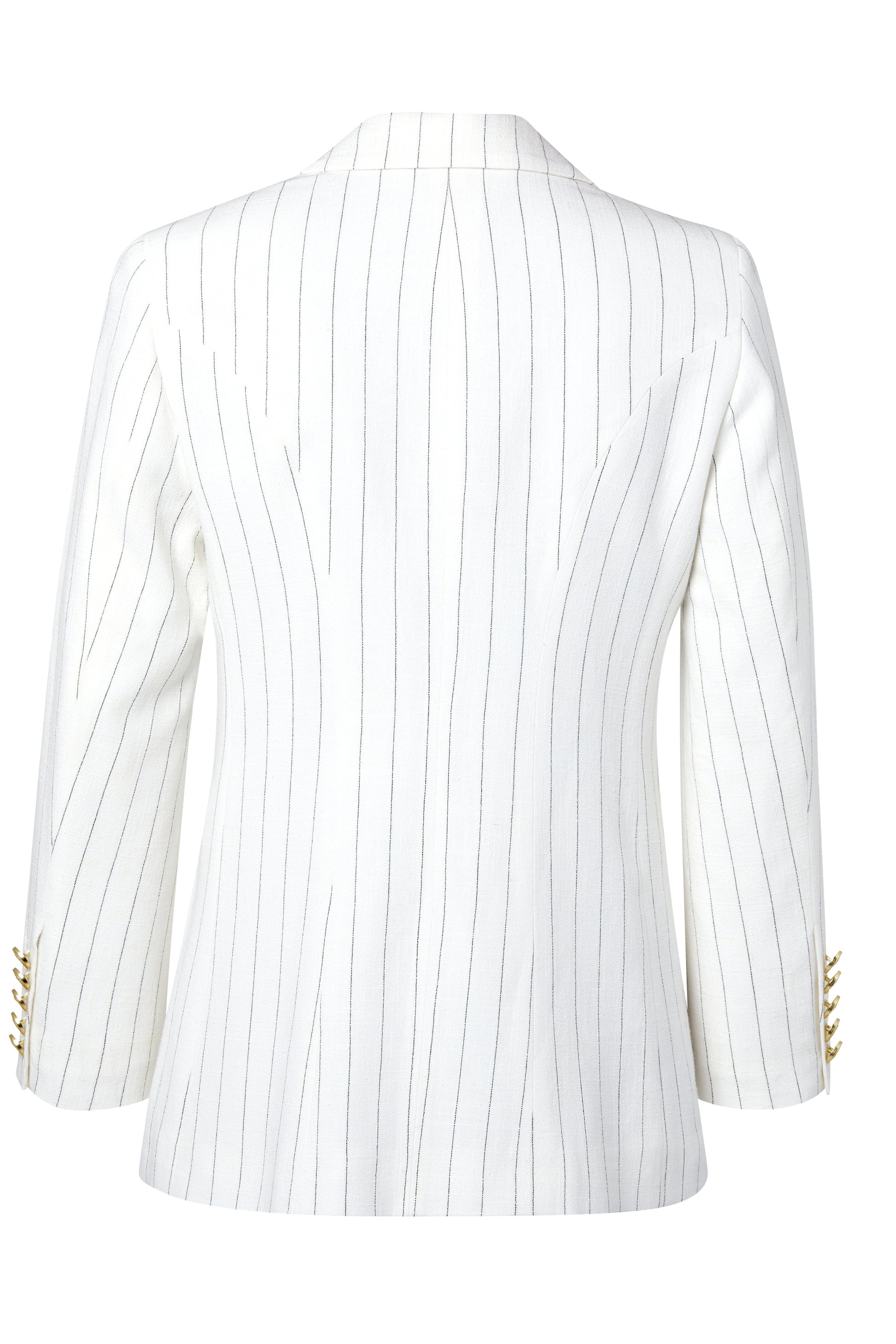 Double Breasted Blazer (Oyster Linen Pinstripe)