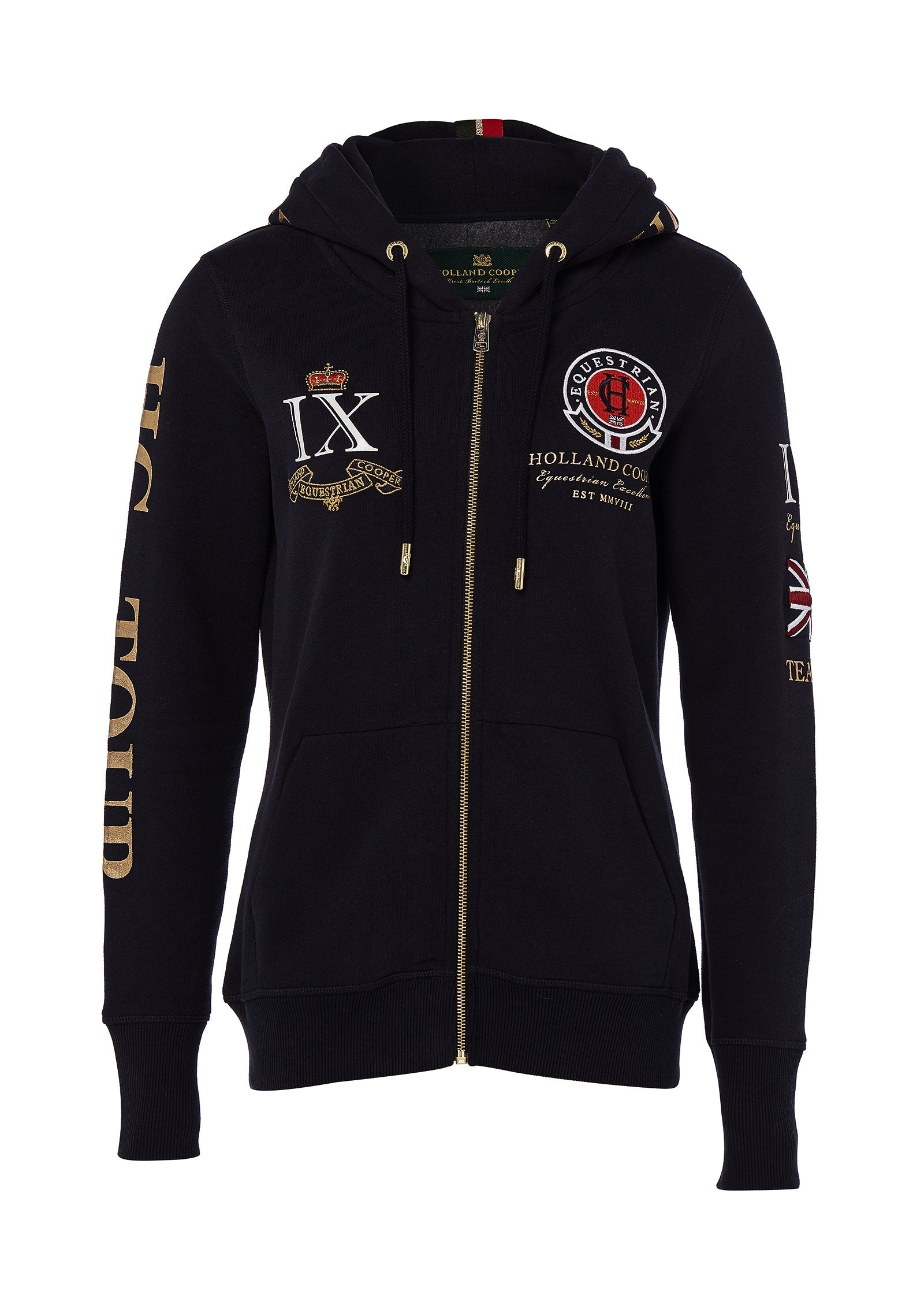 Add a touch of luxury to your off-duty wardrobe with our Team Hoodie. crafted in a comfortable cotton blend with an adjustable front zipper. Finished with our signature embossed gold hardware. embroidered logos and a mix of luxurious graphics. Pair with our Team Joggers for low key. sporty chic.
