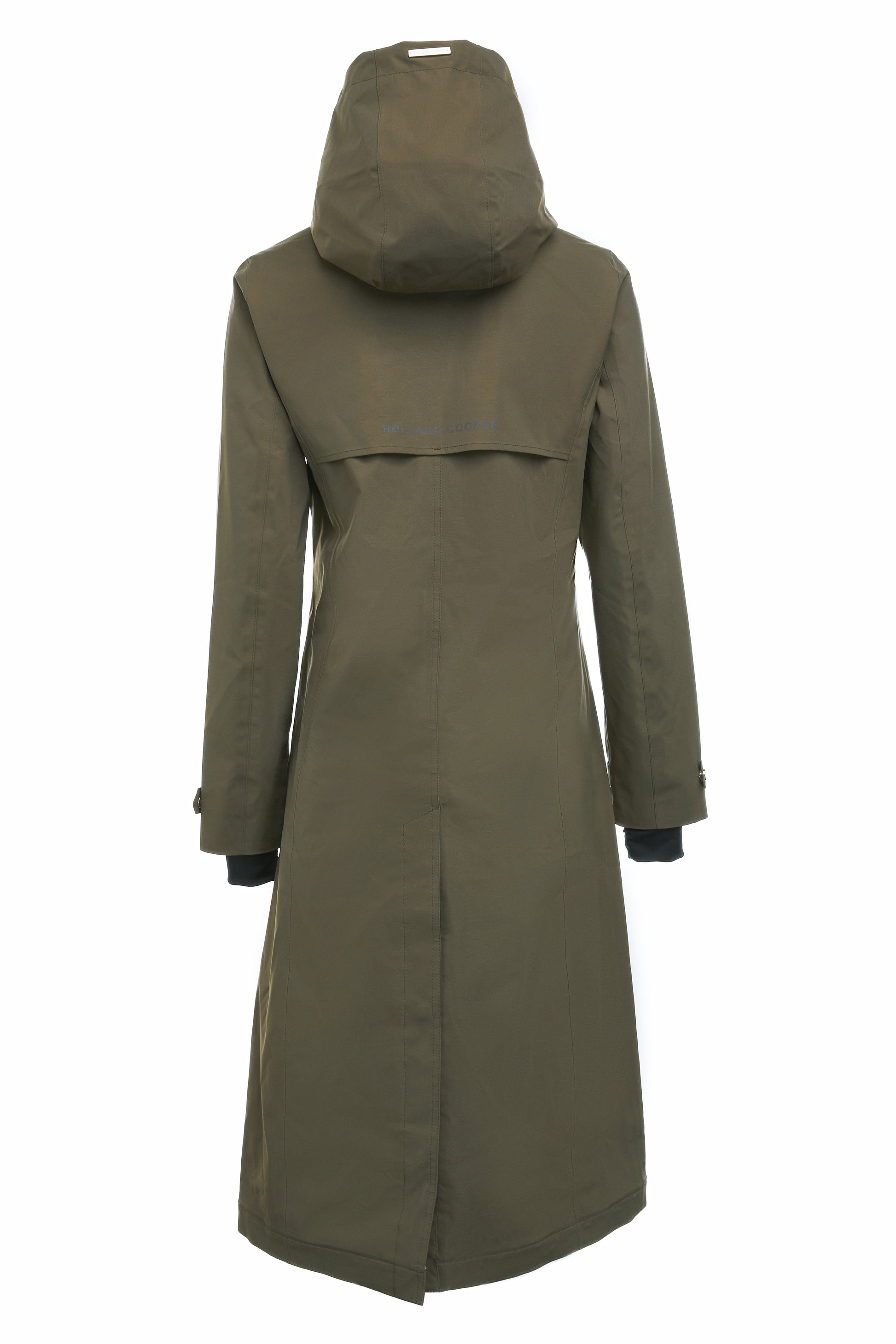 Elegant and slim fitting. this long length rain coat is the perfect companion for a rainy day. Meticulously constructed from waterproof materials with taped and sealed seams. this coat has a modern. technical feel. It comes with a built in padded vest for added warmth along with large lower welt pockets to the front and is detailed with our iconic gold HC hardware.