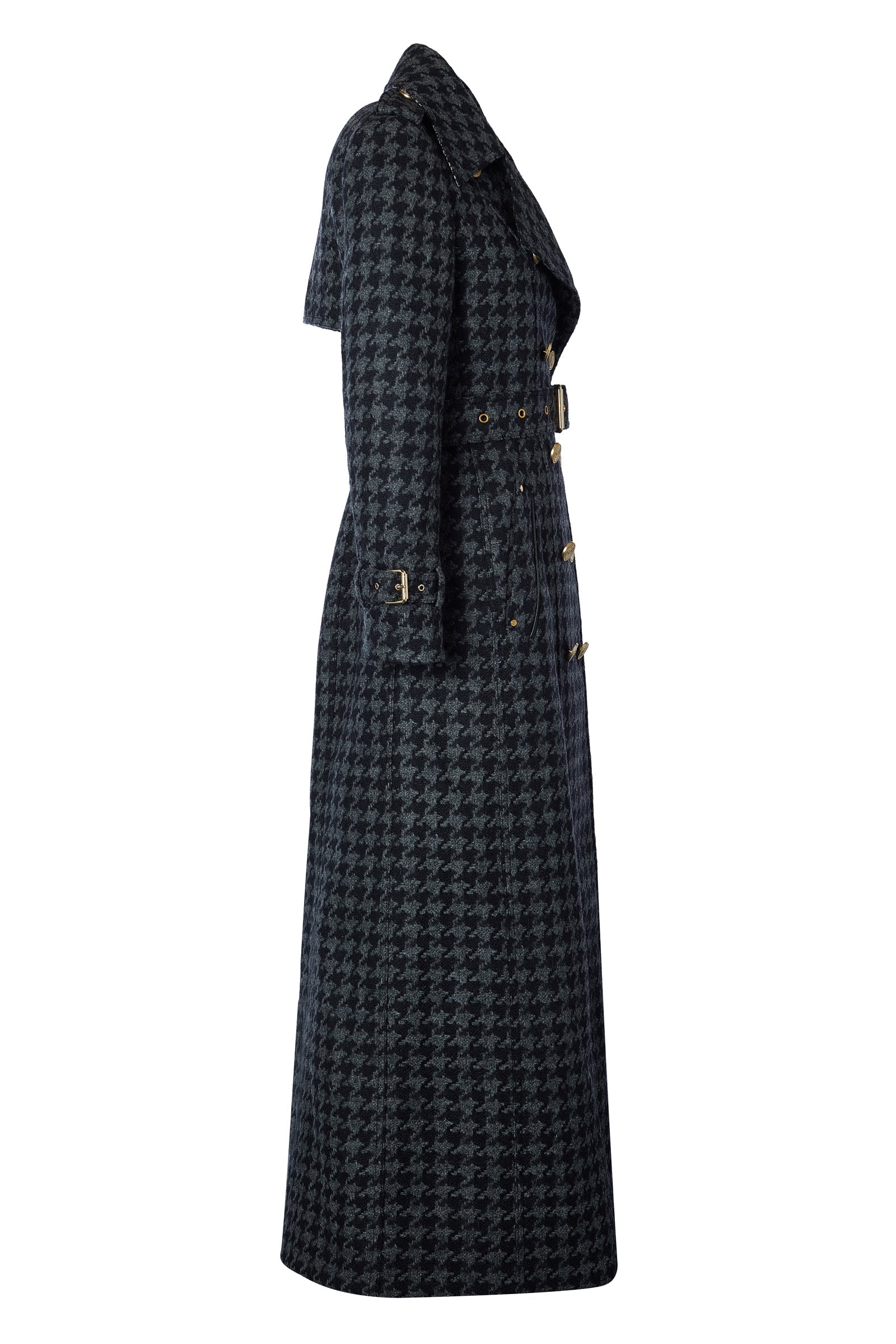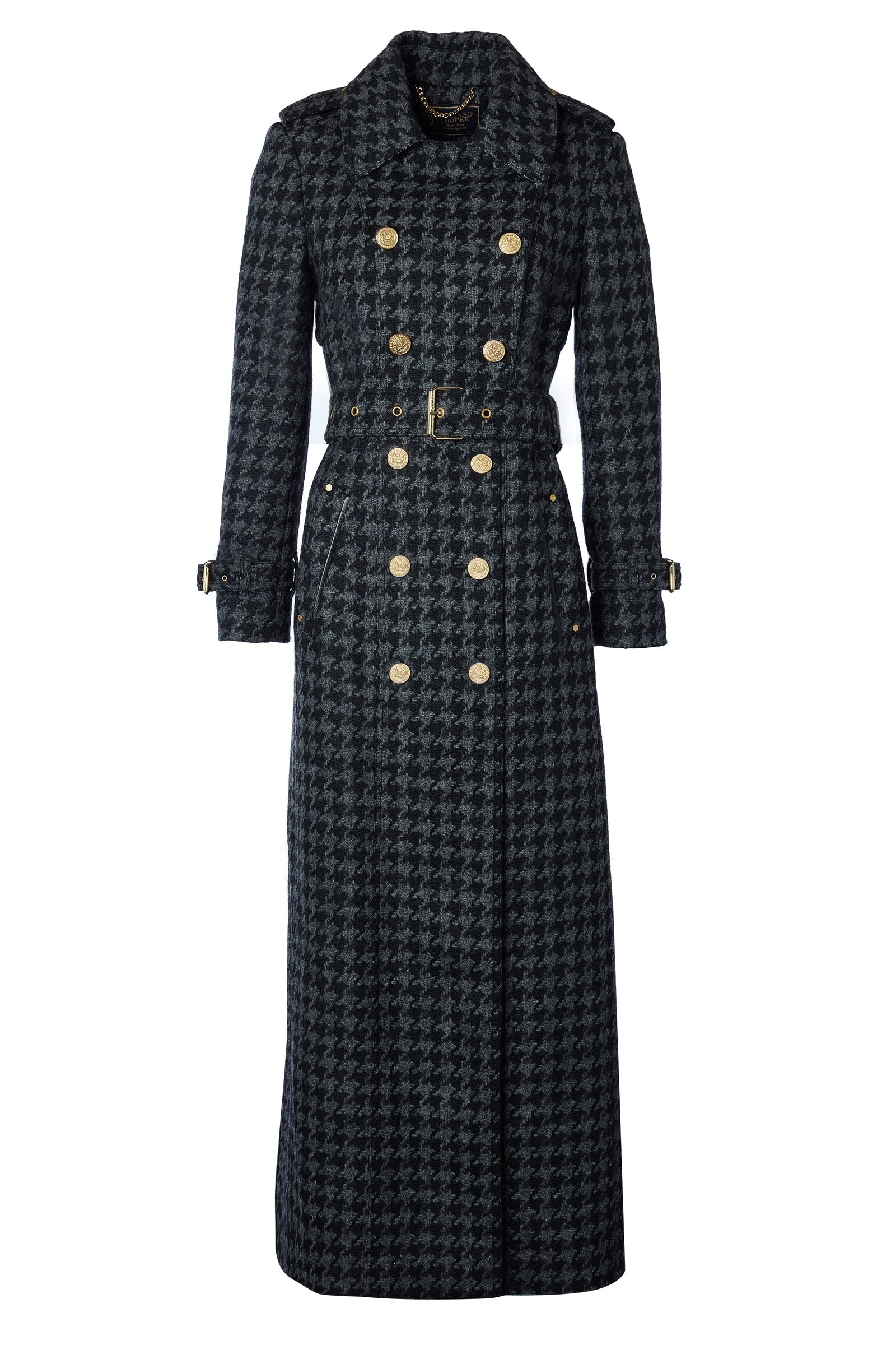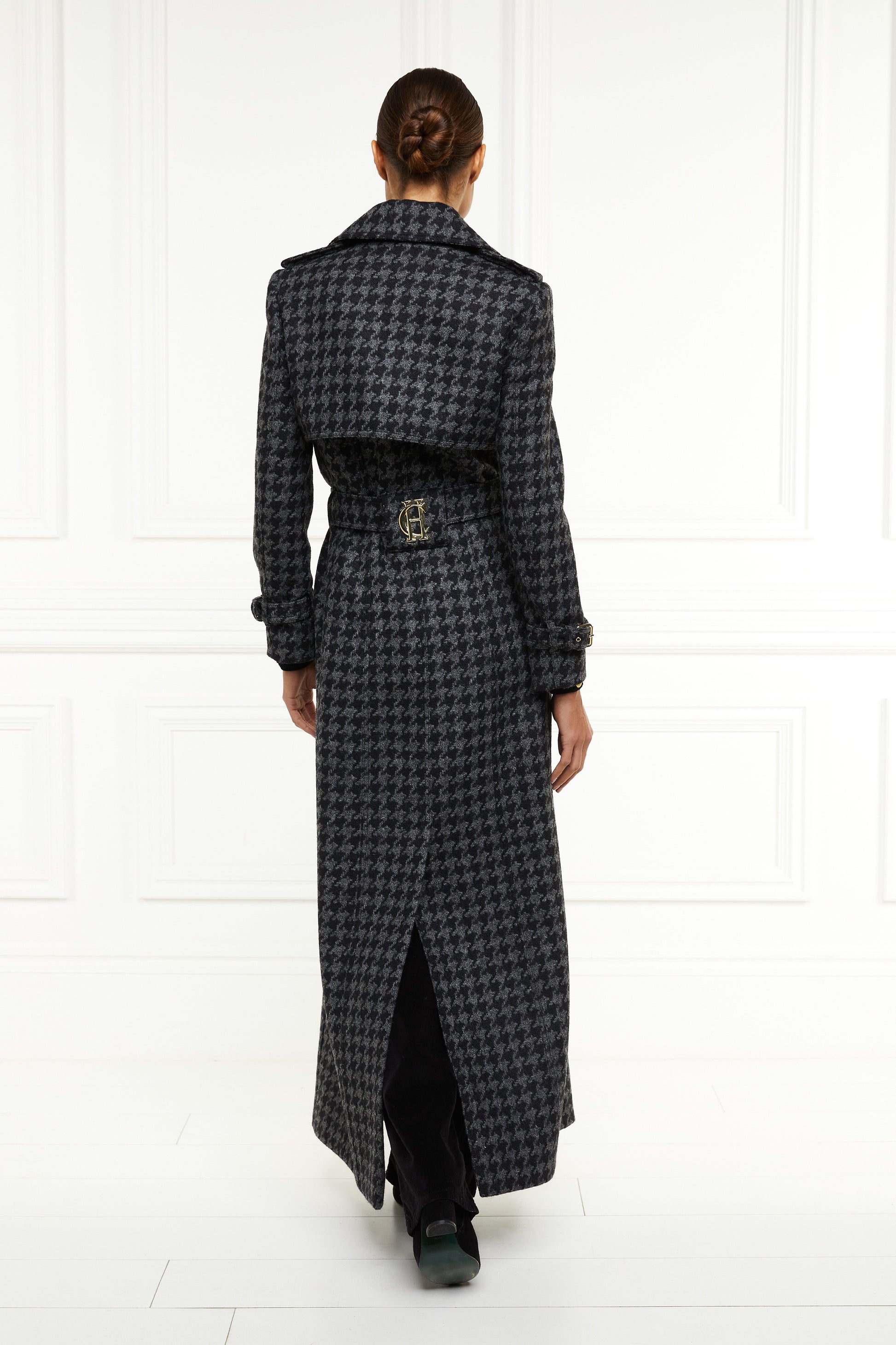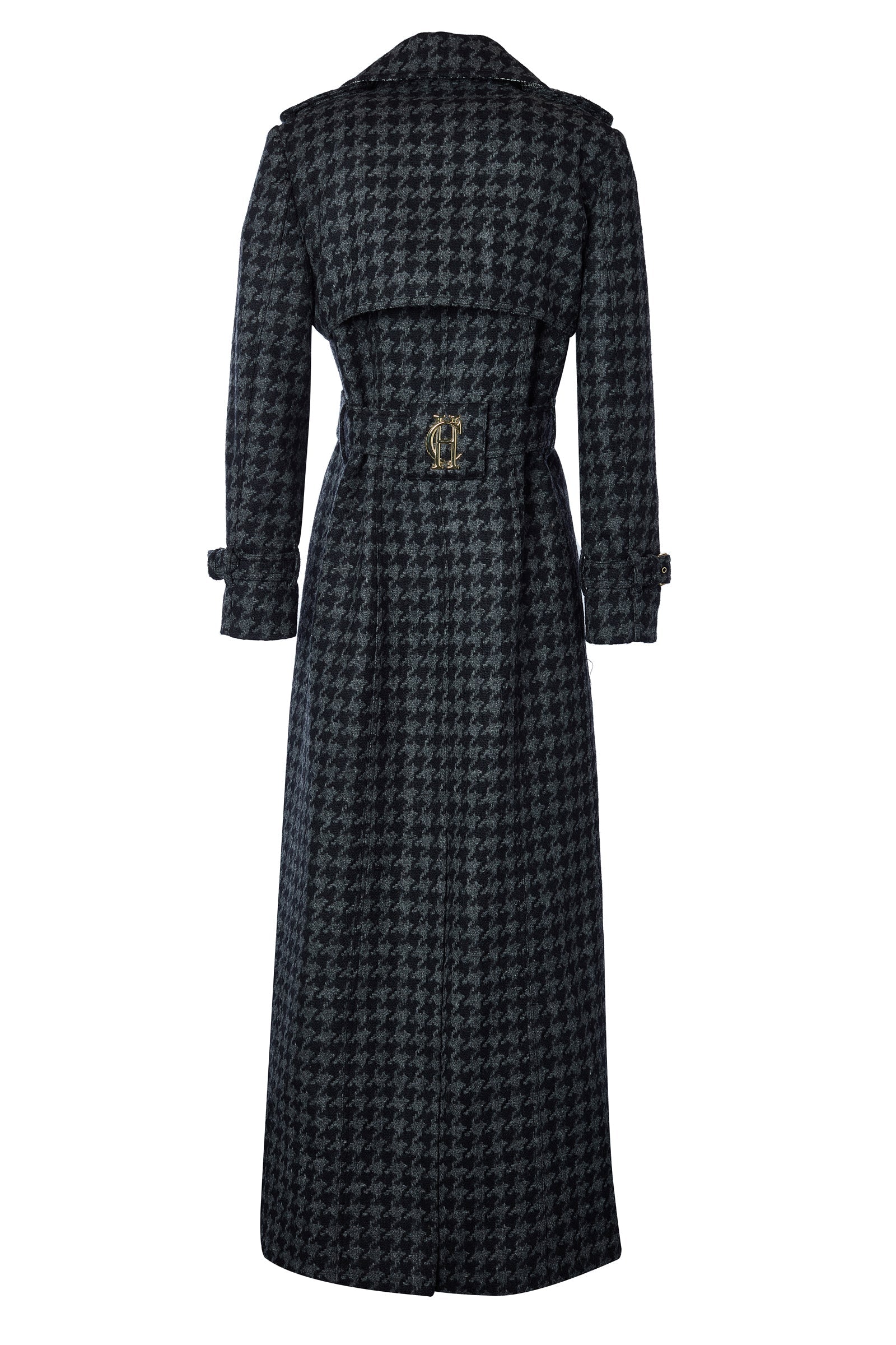 Full Length Chelsea Trench Coat (Large Scale Charcoal Houndstooth)