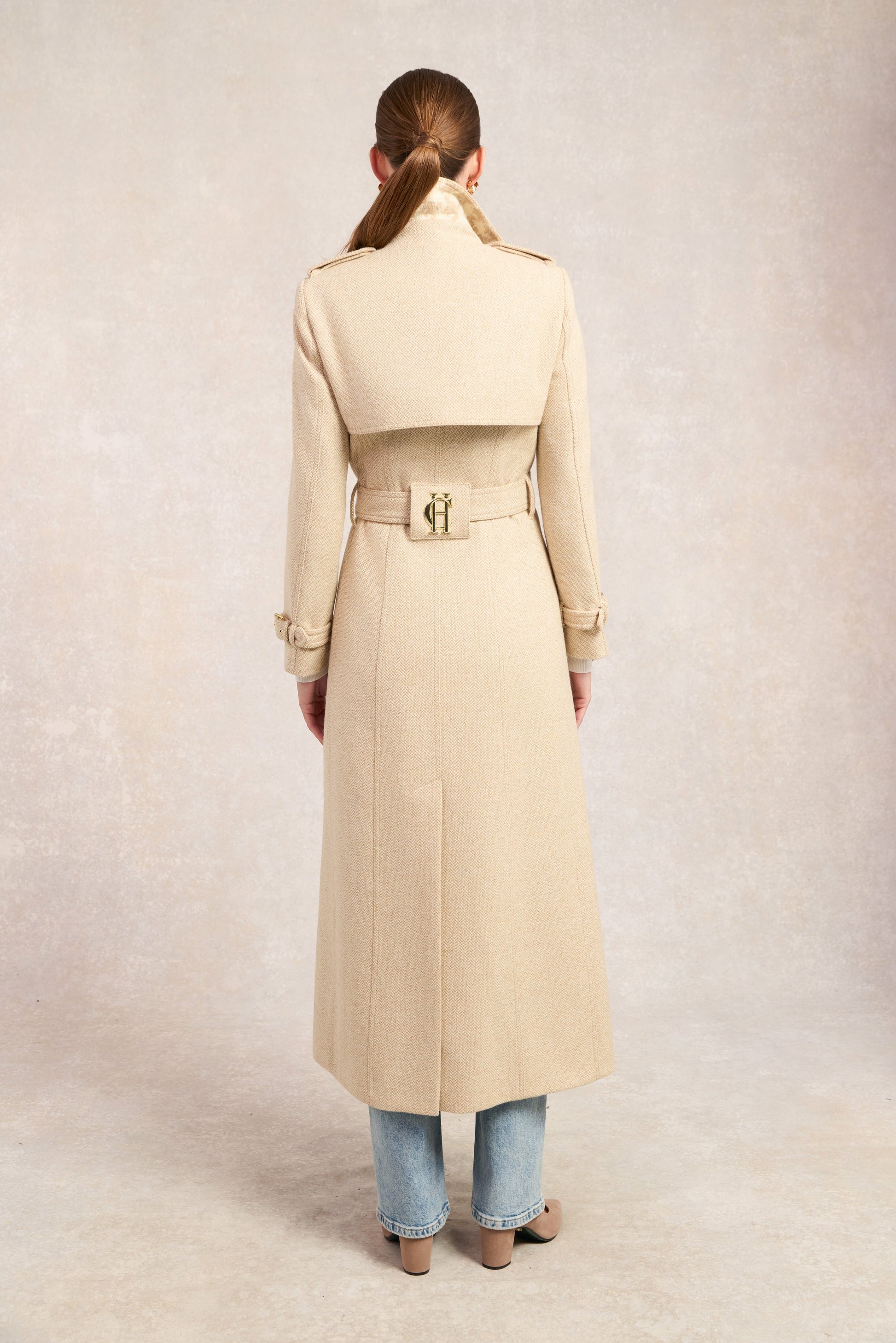 Combining classic tailoring with our exciting heritage. our iconic Full Length Marlborough Trench Coat has been handmade in the UK with the utmost care and attention. Tailored for a slim fit with a longline silhouette. its double breasted-front and belted waist adds to the flattering definition that stands at the forefront of its design. Beautifully elevated with statement lapels. military-inspired epaulettes and HC's iconic hardware.