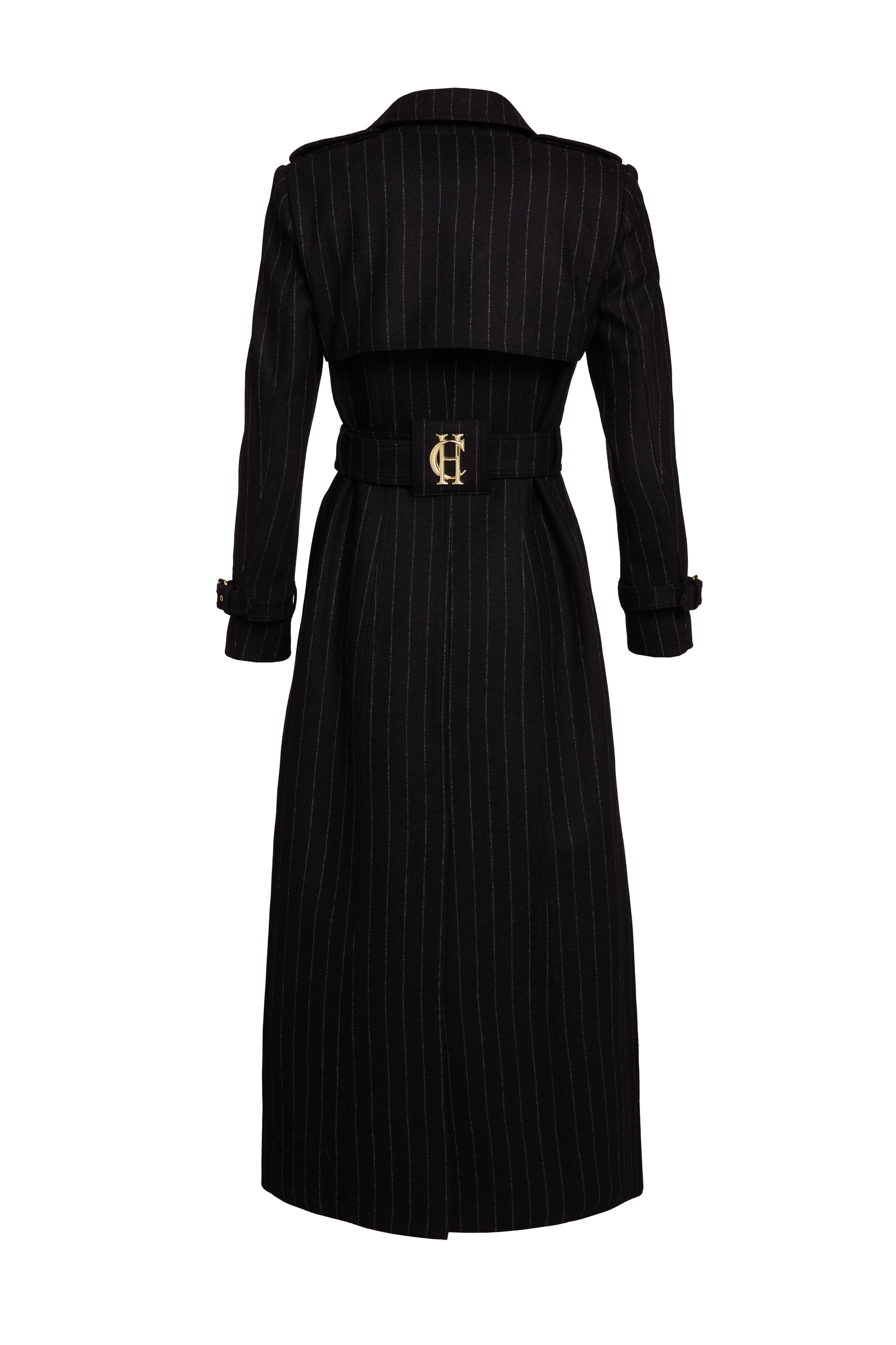 Full Length Marlborough Trench Coat (Black Pinstripe)