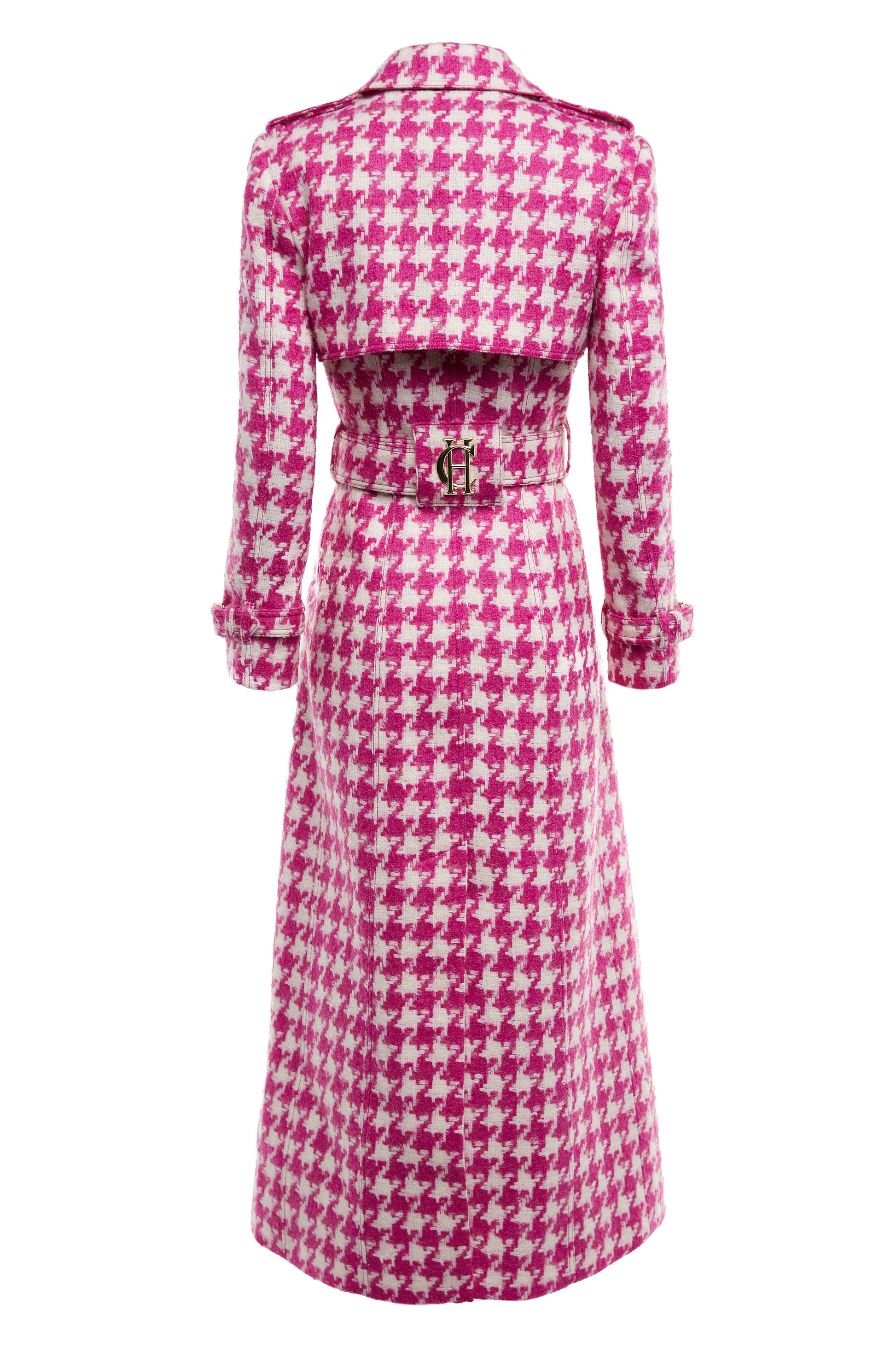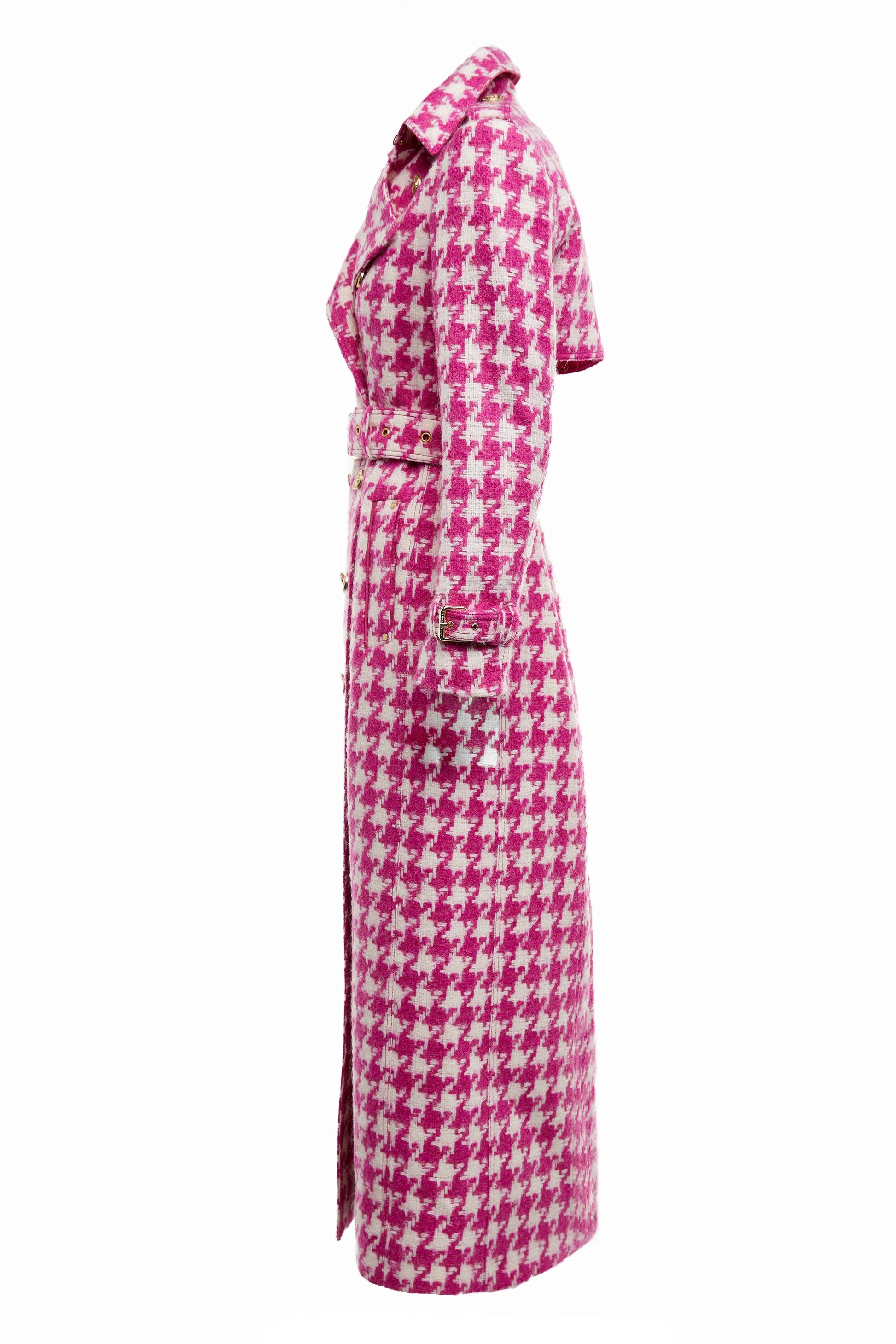 Full Length Marlborough Trench Coat (Hot Pink Large Scale Houndstooth)
