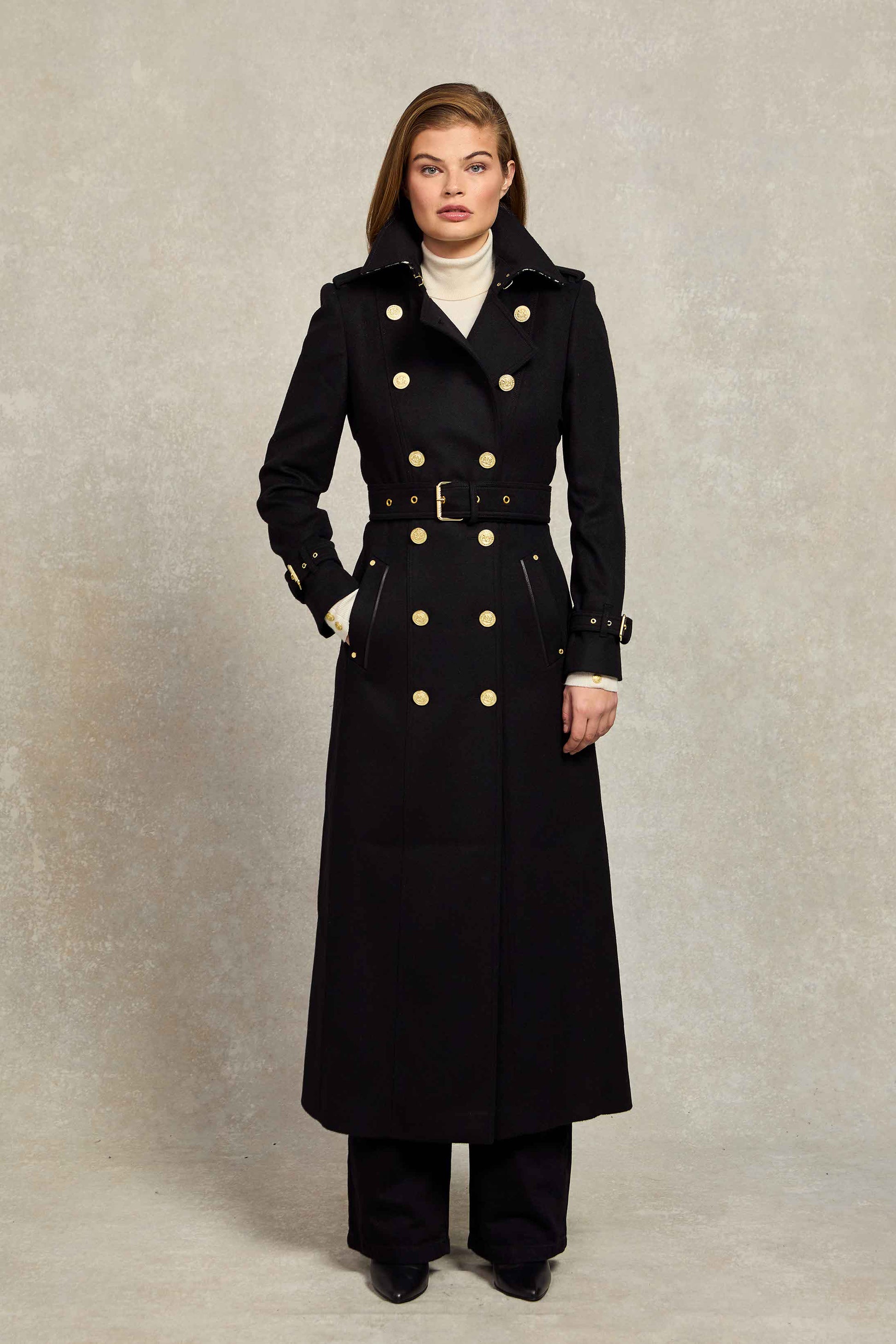 Classic and timeless. the Marlborough full length trench coat is a wardrobe staple and a lifetime investment. A fitted design that complements any figure. its double breasted-front and belted waist adds to the flattering definition that stands at the forefront of its design.
