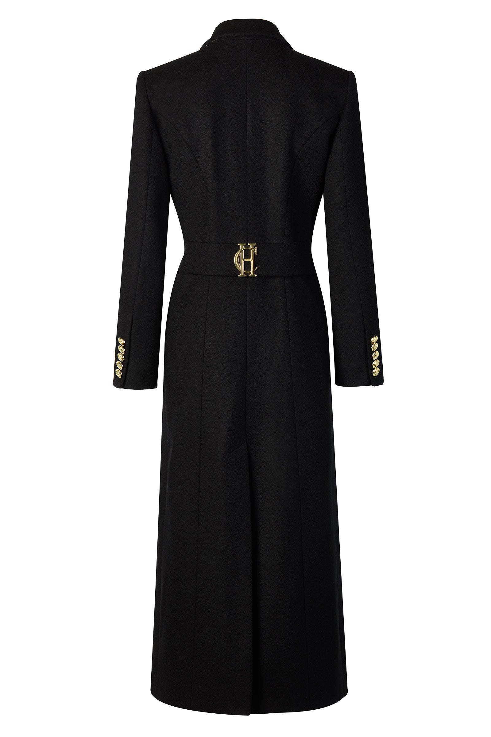 Perfectly capturing understated elegance. the Regency Coat offers a full-length tailored fit and exceptional craftsmanship. The coat is fastened with our signature luxury HC buttons and the slim tailored silhouette gives an elegant silhouette. Wear open or closed. this coat lends itself effortlessly to the slim fit tailoring which is centred around a decorative back buckle. Proudly hand cut and made in England using wools woven in the UK.
