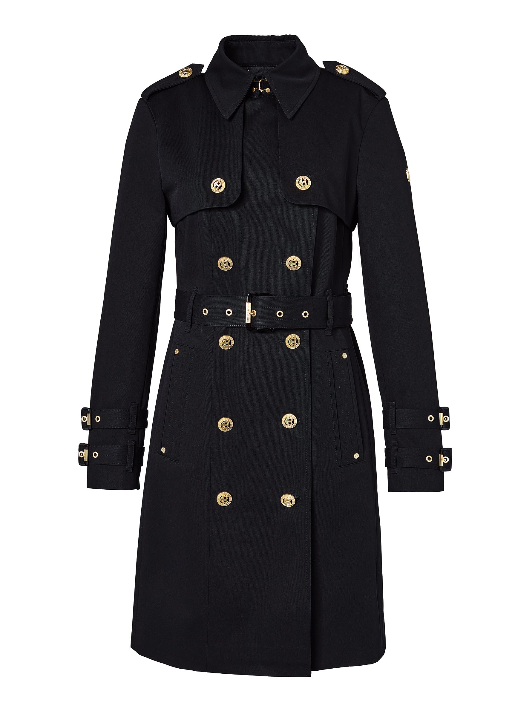 Introducing the reimagined Marlborough Trench coat. a modern masterpiece crafted from compact twill that pays homage to timeless tradition. The tightly woven worsted fibres of the outer fabric naturally repel water. ensuring you stay dry and stylish no matter the weather. This elegant coat is rich in classic details. from the traditional yoke and vent designs to the iconic shoulder epaulettes. Each element speaks to our heritage of luxury tailoring. while the detachable belt and multi-row topstitching add a touch of contemporary flair. The matte gold hardware provides a refined contrast. elevating the coat's aesthetic by blending tradition with modernity.