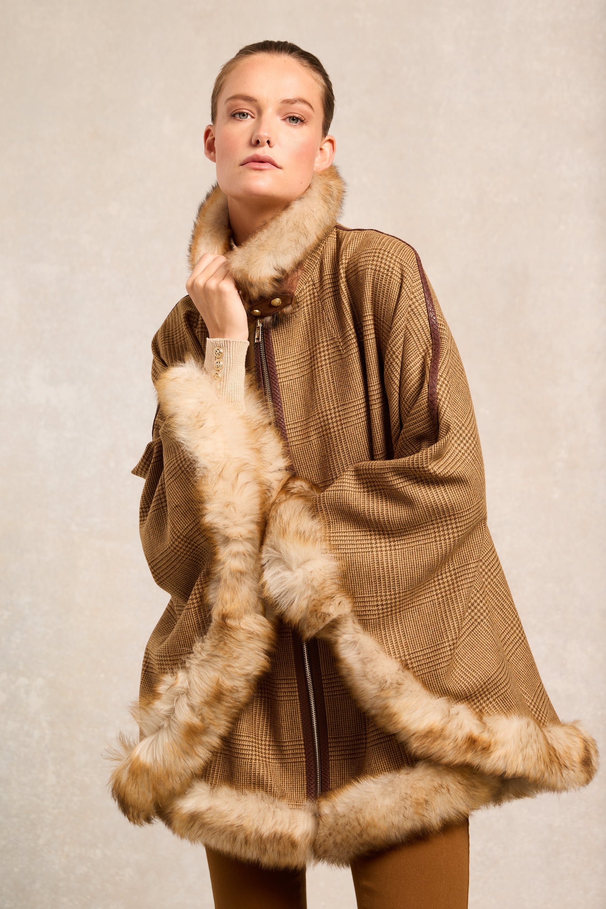 The Gold Label Chiltern Cape is a stunning homage to Holland Cooper's rich heritage. Meticulously designed with a relaxed fit silhouette. this cape is fully lined and is cut to scoop down at the back for a feminine look and feel. Trimmed fully with a luxurious faux fur look. made from the finest double finished Toscana lambswool.