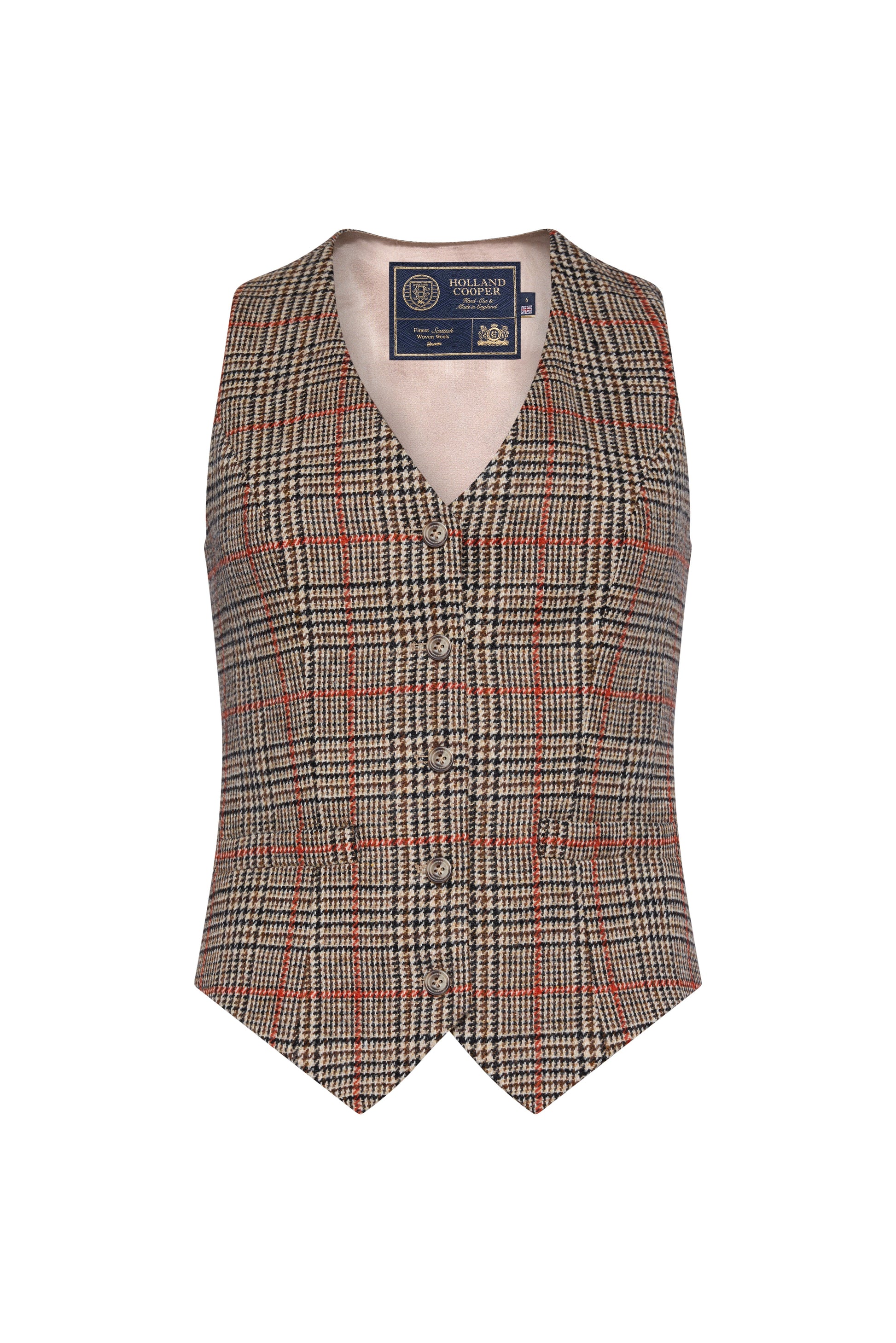 Both classic and refined. this waistcoat offers a slim tailored fit with a skimming v-neckline and elegantly shaped hem. A classic wardrobe staple with traditional suiting details. neat welted pockets. satin lining and a darted front. the back adjuster allows for a personalised fit. Subtly detailed with HC horn buttons. Looks great simply paired with matching trousers. as a layering piece. or as part of a 3 piece suit. Proudly hand cut and made in England using wools woven in the UK.