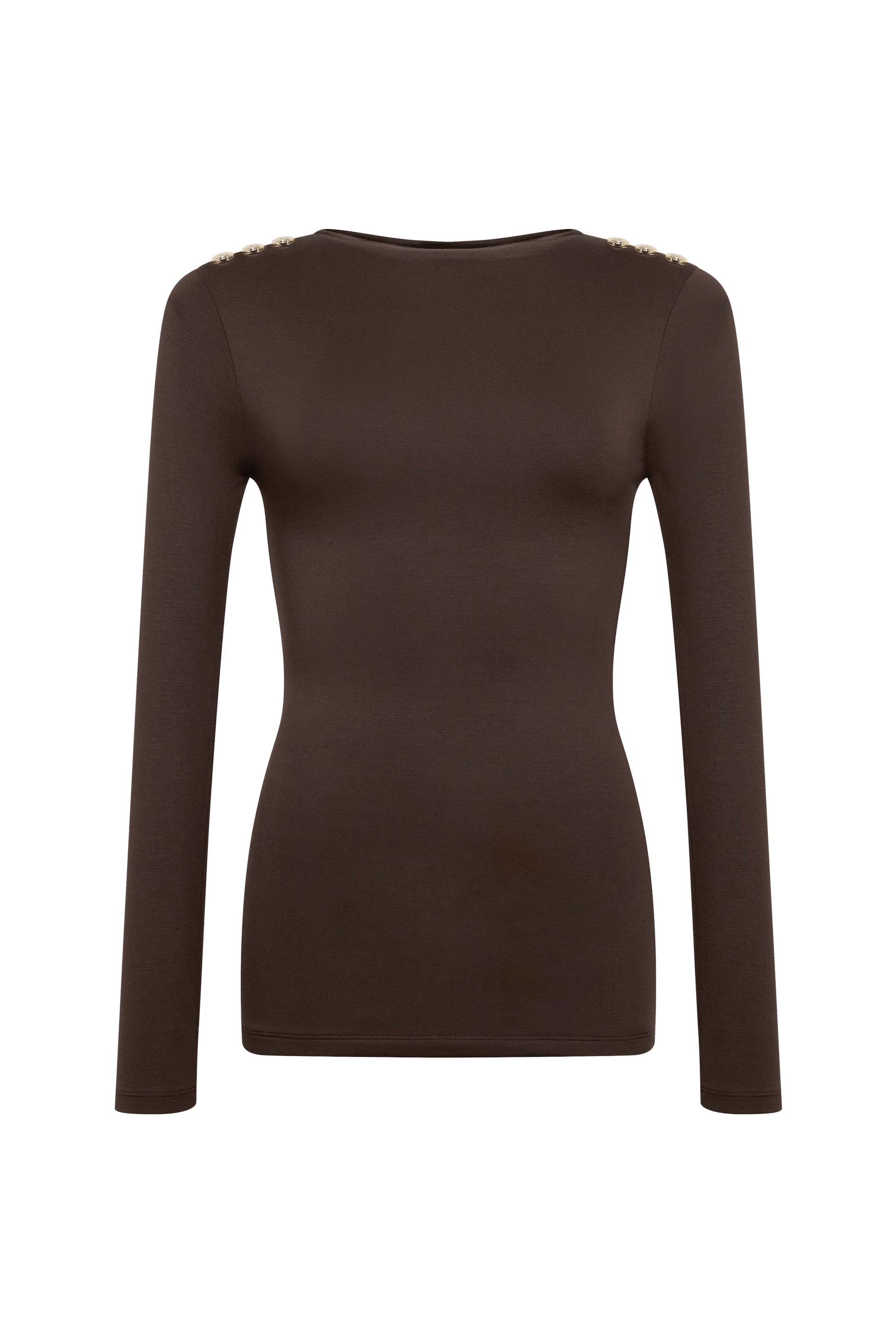Exuding effortless sophistication. the Harper Long Sleeve Top in natural combines luxurious comfort with refined detailing. This double-layered piece offers elegant draping and exceptional wearability. Distinguished by signature crested rivets at the shoulders. it's an elevated essential that seamlessly transitions from day to evening.