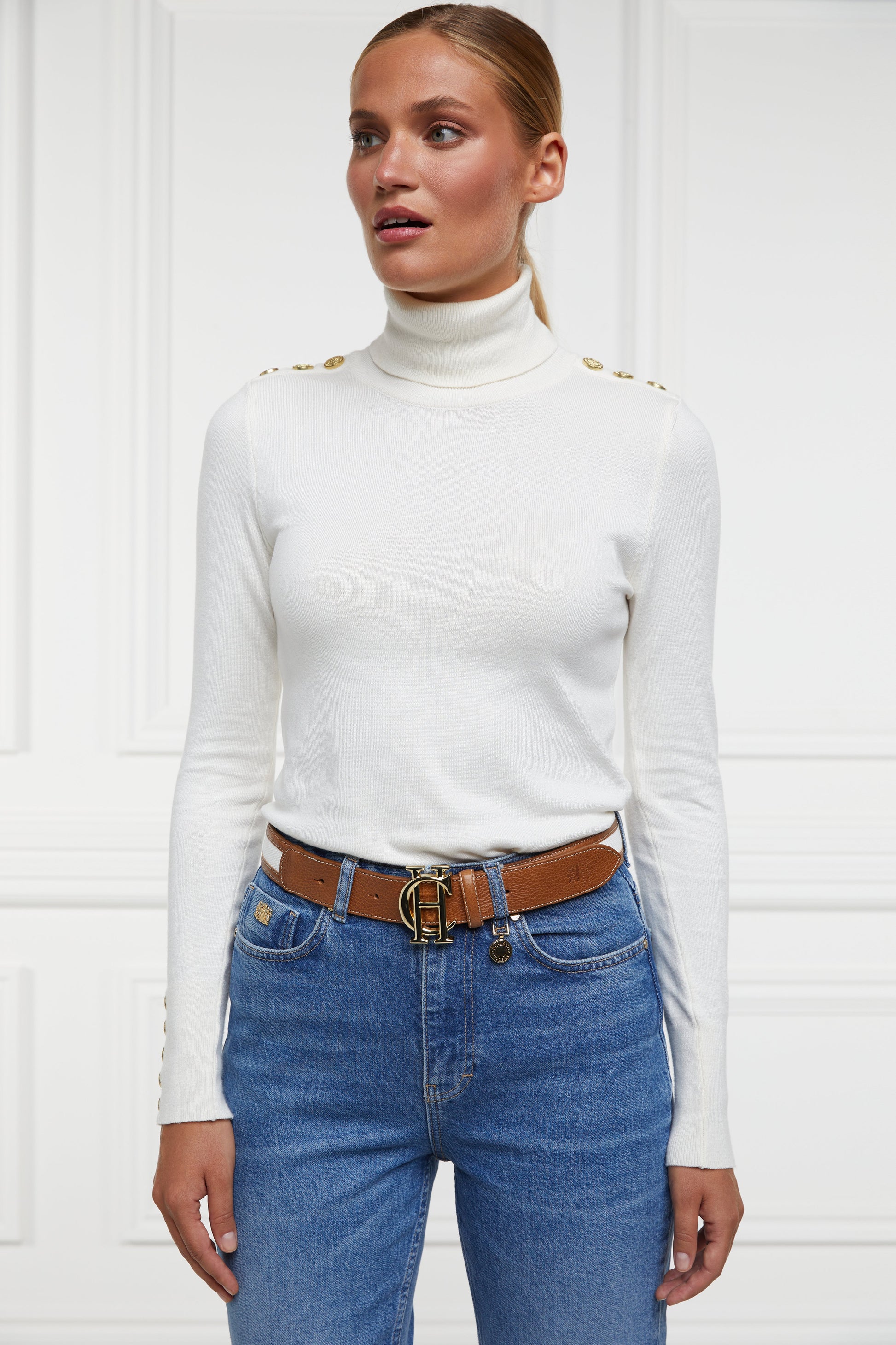 Crafted by hand with meticulous attention to detail. this belt is a true embodiment of British craftsmanship. Featuring our iconic HC buckle in classic gold. the canvas window detail adds a modern touch. creating a perfect balance between tradition and trend. With a tan nubuck lining and HC embossing to the end.
