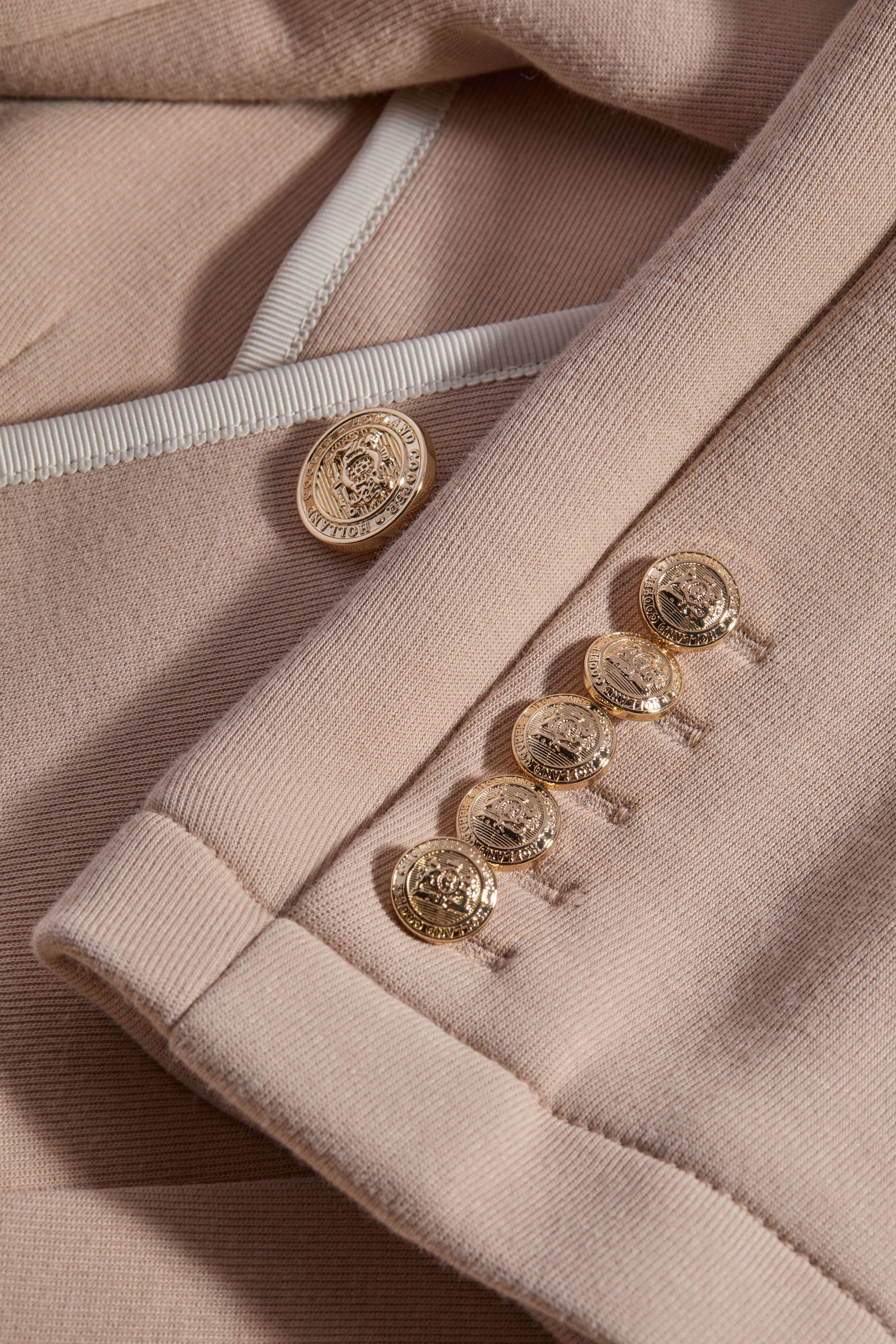 Designed with a tailored silhouette. the Henley Blazer has been designed with an elegantly slim fit and vintage-inspired aesthetic. Created from a heavyweight knitted shell fabric. this blazer has been beautifully characterised by our iconic handmade HC badge on the chest pocket. With an elegant two-button closure. the traditional piping adds a preppy and chic touch. Detailed with patch pockets and buttoned cuffs.