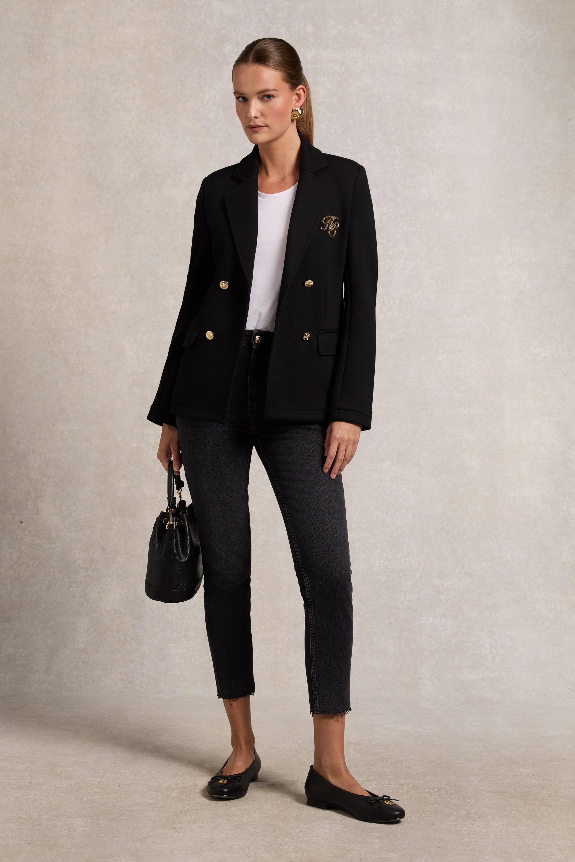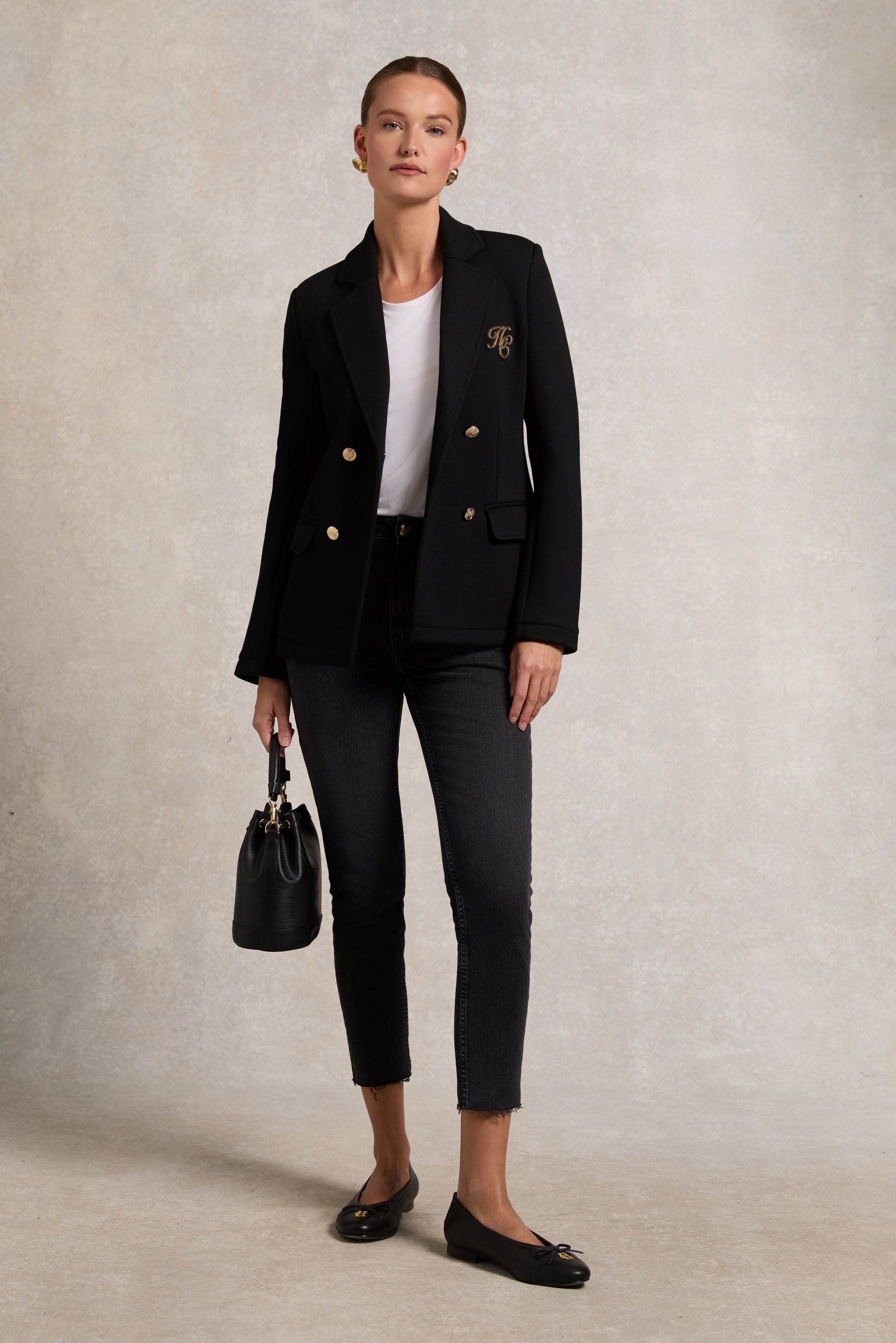 Designed with a classic high waist and slim leg. these jeans have been created from a comfortable stretch denim. Detailed with a traditional five pocket styling with a delicate gold crest to the coin pocket. the raw hem adds to their laid back style. With sewn indicators for Short. Regular. and Long leg lengths. tailor these jeans to be the perfect fit for you. Finished with our iconic hardware and new style leather jacron.