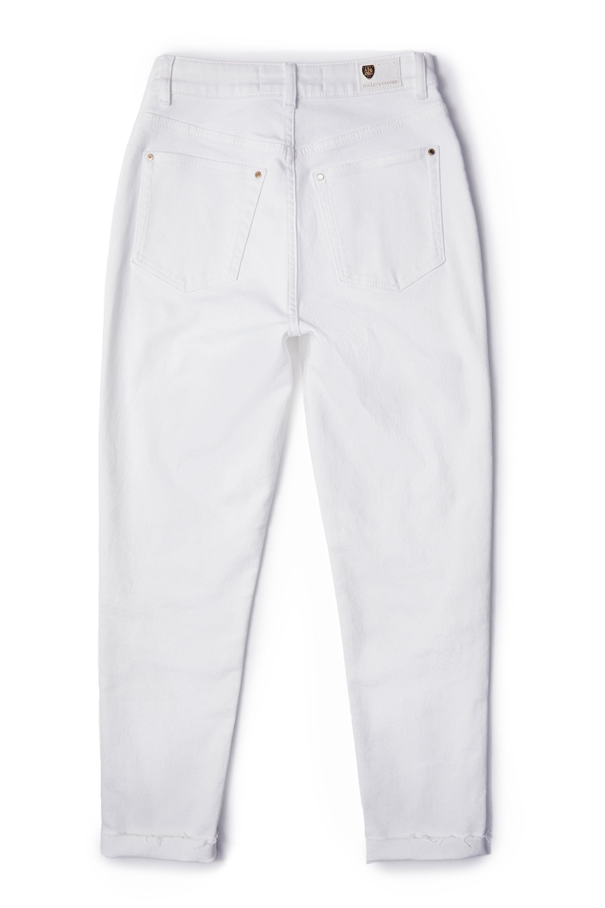 Designed with a classic high waist and slim leg. these jeans have been created from a comfortable stretch denim. Detailed with a traditional five pocket styling with a delicate gold crest to the coin pocket. the raw hem adds to their laid back style. With sewn indicators for Short. Regular. and Long leg lengths. tailor these jeans to be the perfect fit for you. Finished with our iconic hardware and new style leather jacron.
