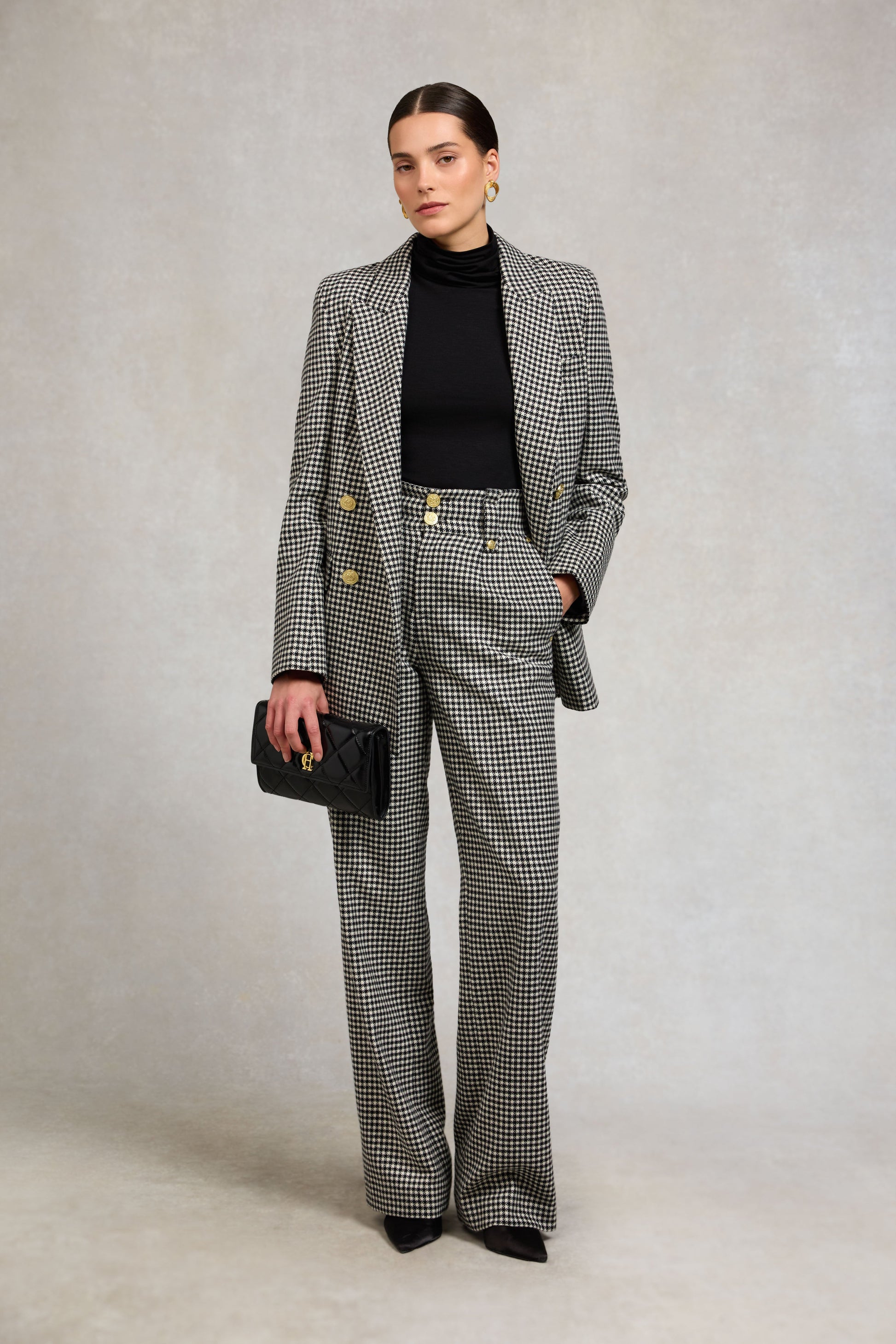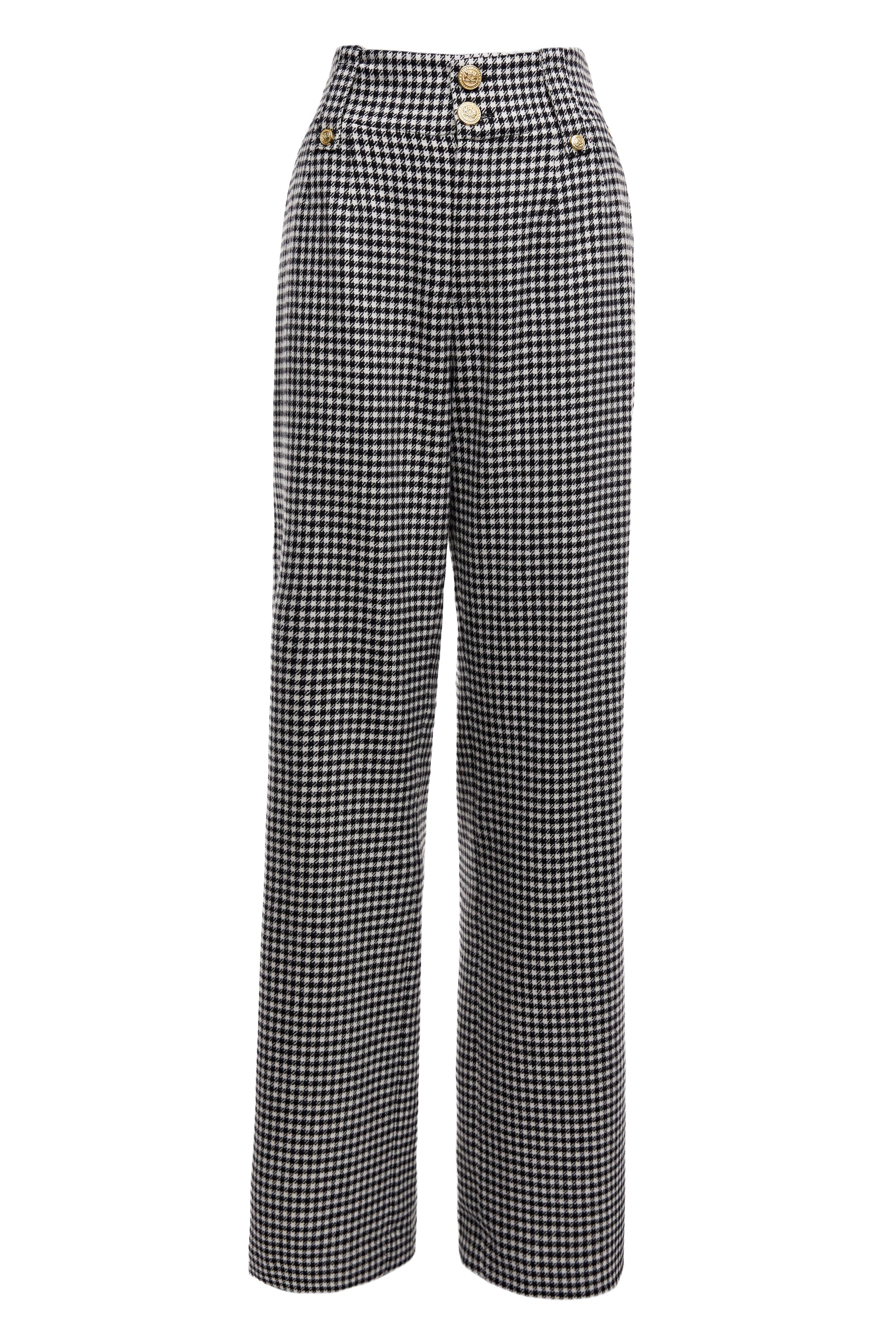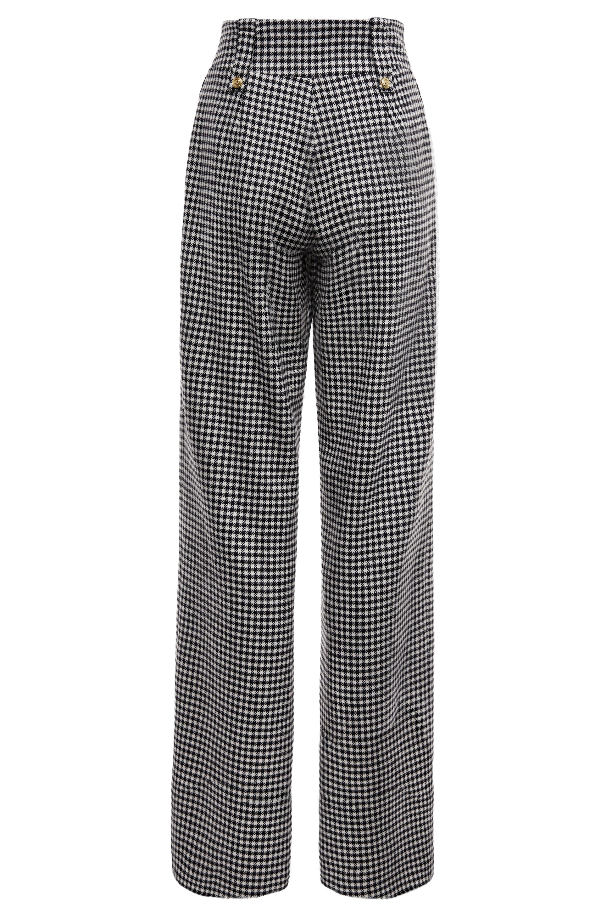 High Waisted Straight Trouser (Black & White Puppy Tooth)