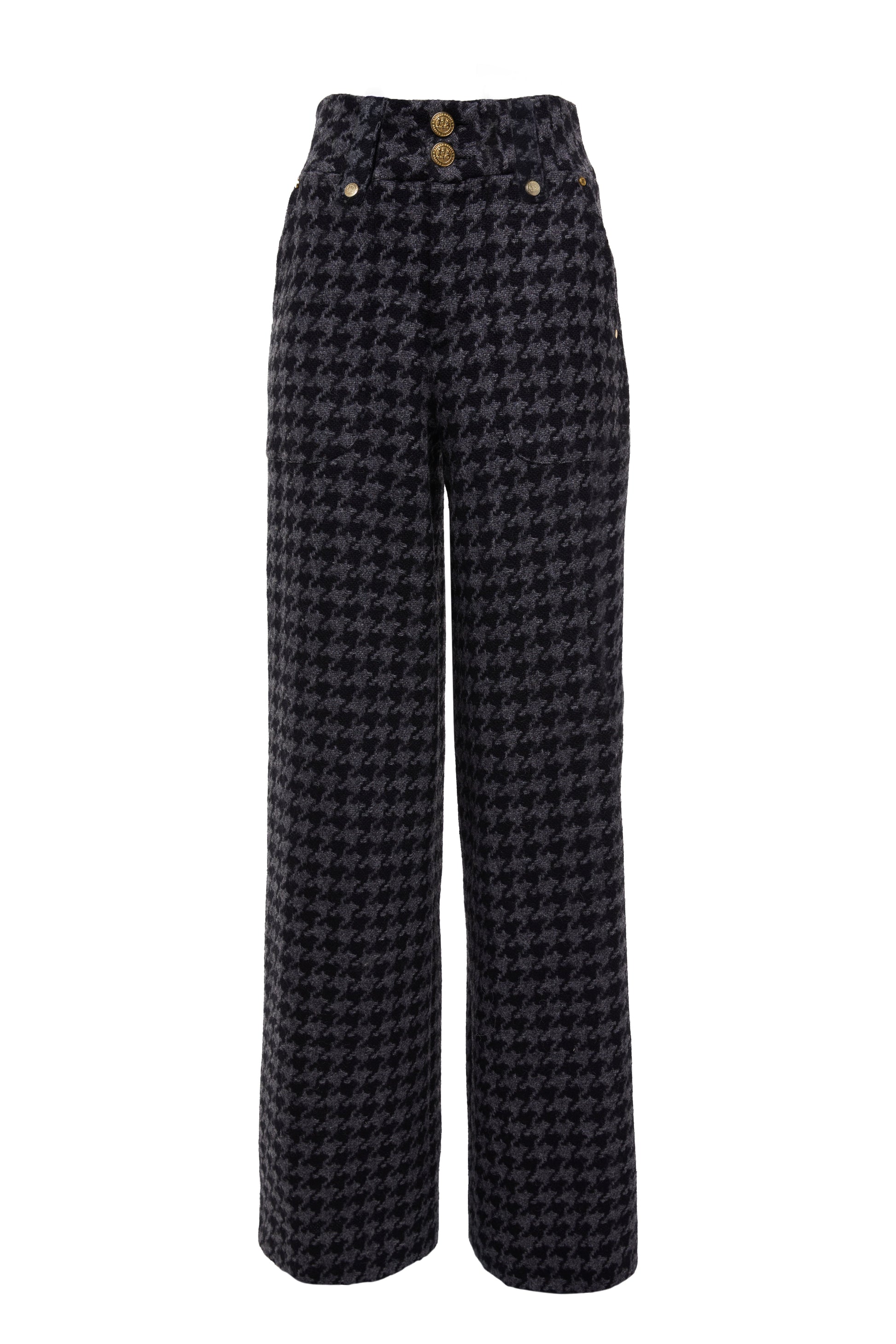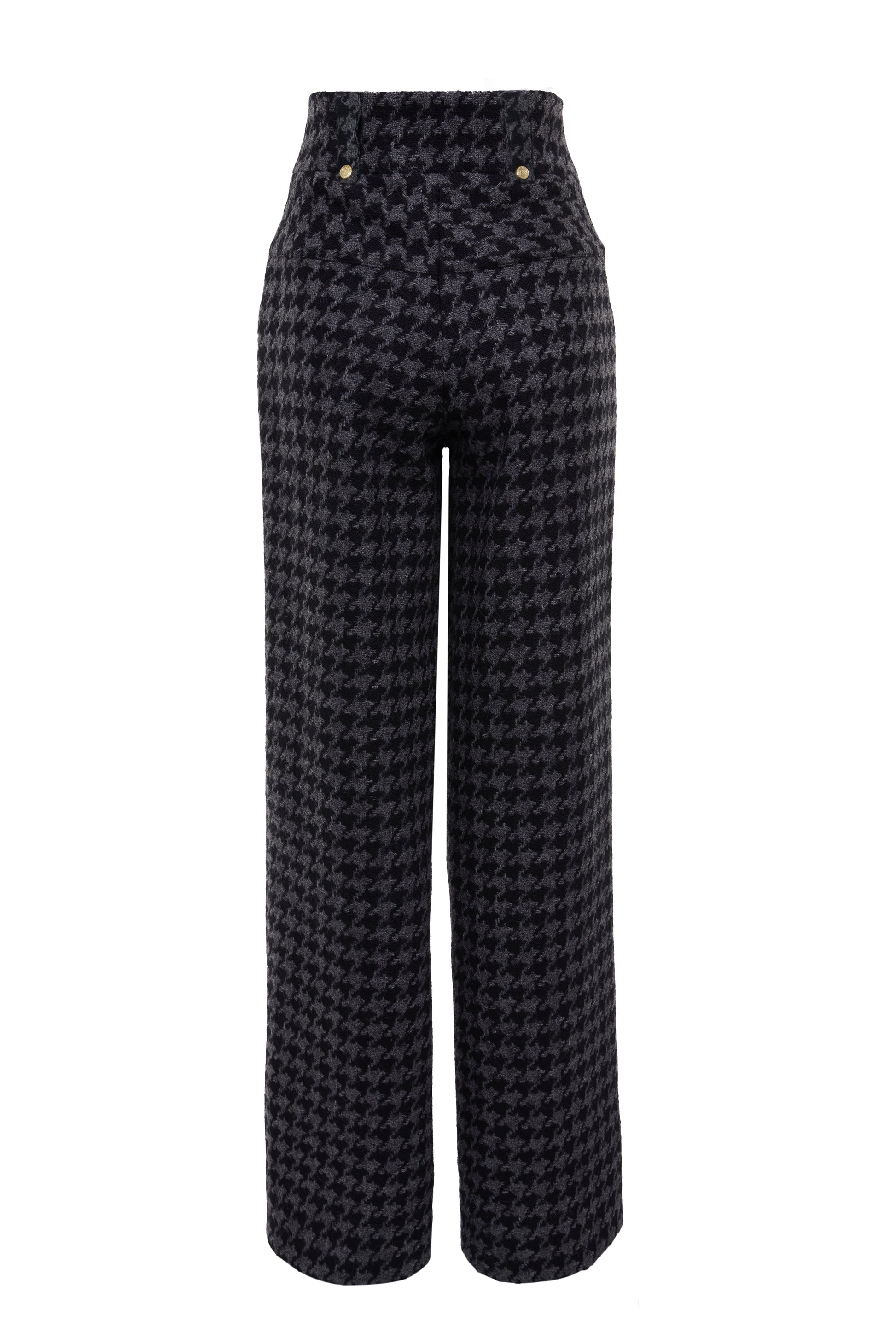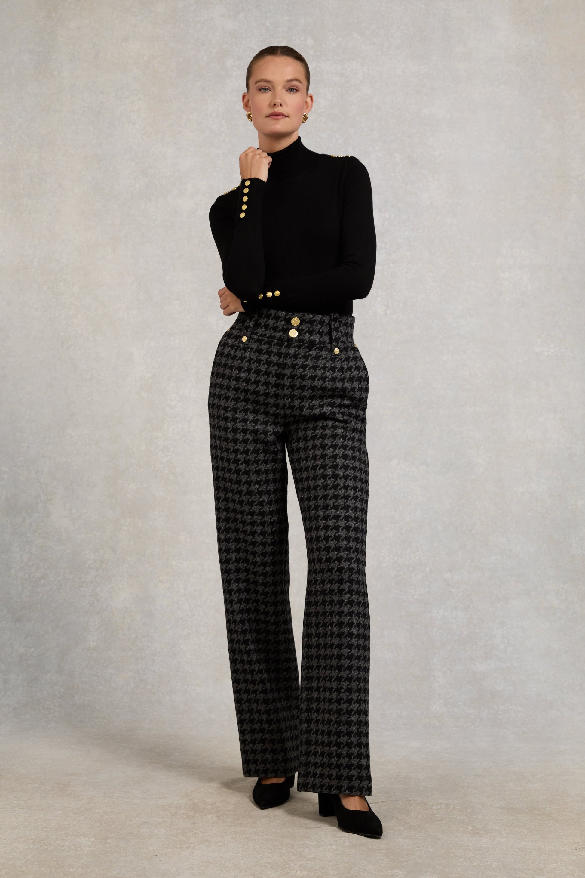 High Waisted Straight Trouser (Large Scale Charcoal Houndstooth)