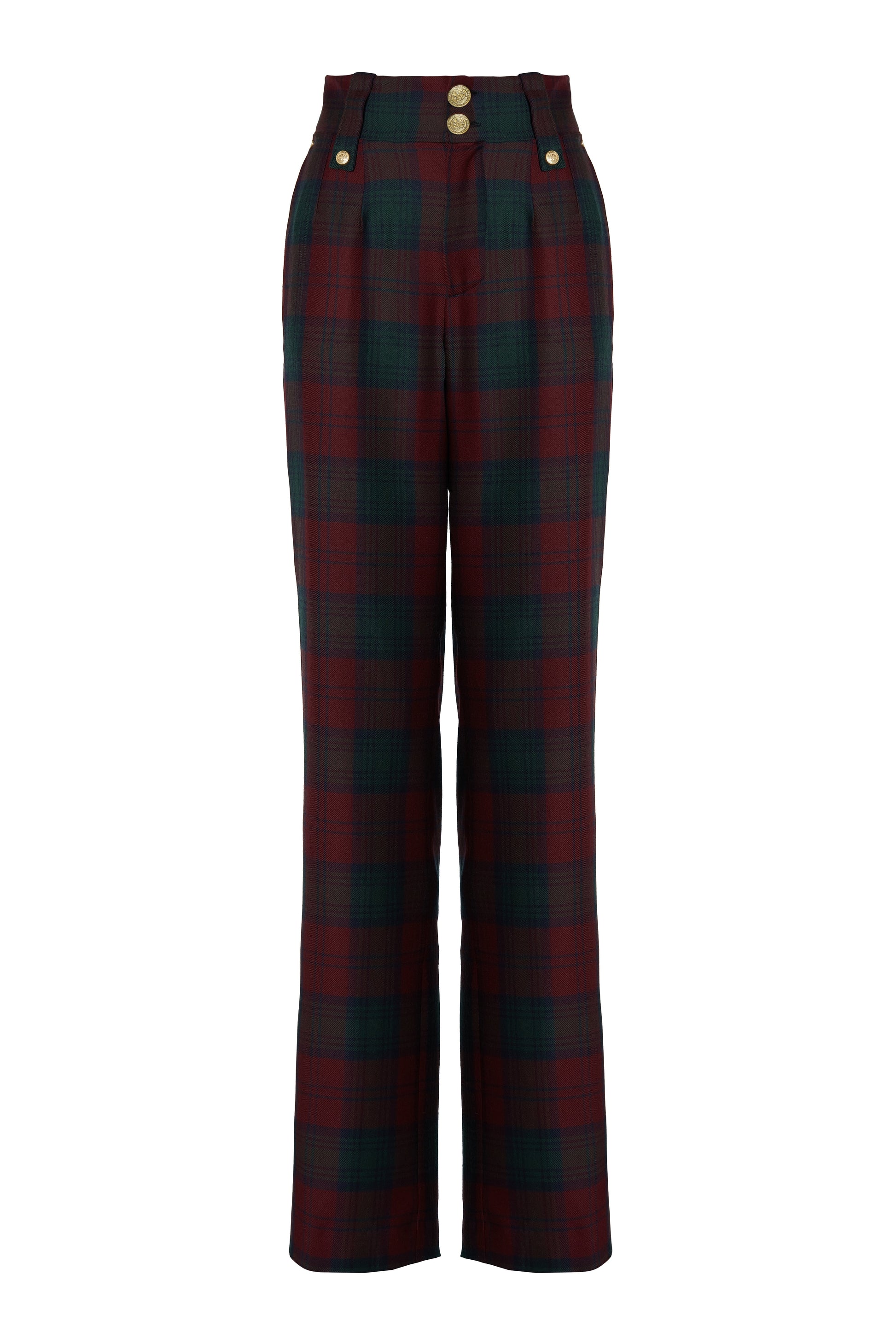 High Waisted Straight Trouser (Mulberry Tartan)