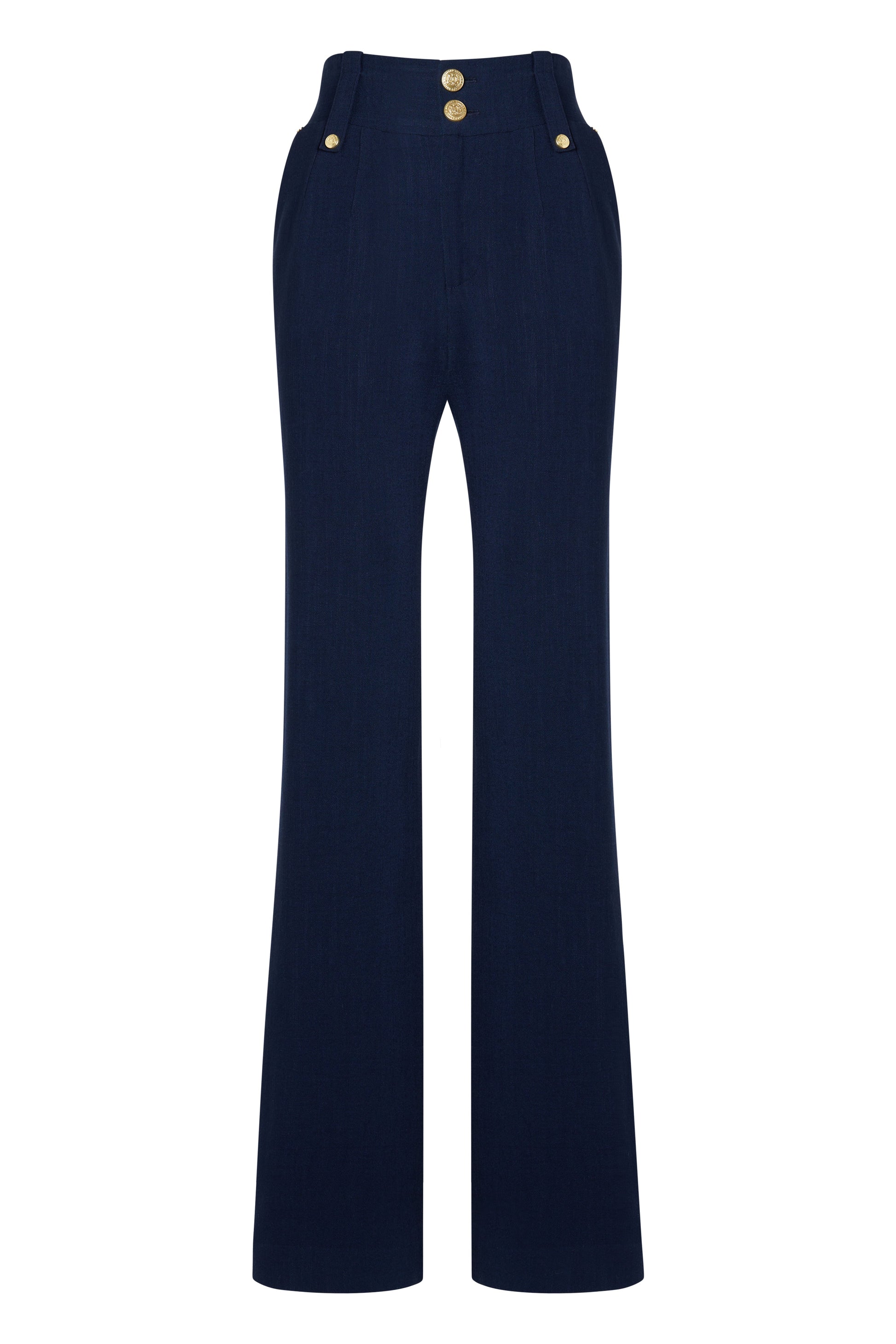 Simple and refined. these straight-leg linen trousers are a must-have for your summer wardrobe. Crafted from our crease resistant. lightweight and breathable linen blend. these trousers sit high on the waist with a wide waistband to create a flattering silhouette that suits all body shapes. Featuring two large side pockets and adorned with our iconic gold hardware for an added touch of luxury.