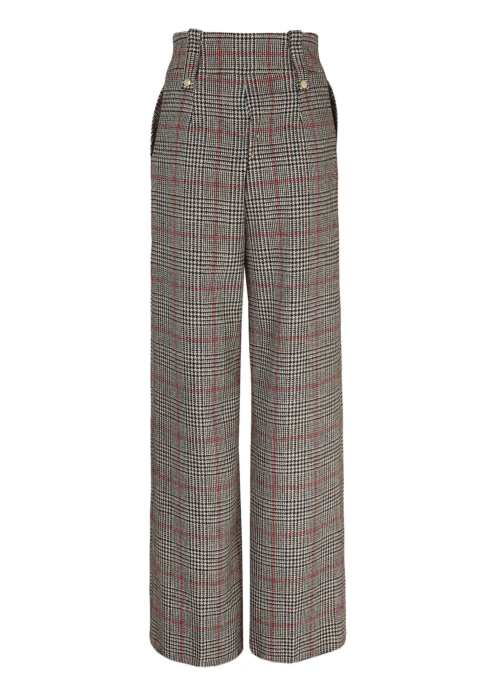Simple and refined. these straight-leg trousers are the perfect balance of smart and casual that effortlessly take you from day to night. Made from a luxurious wool blend that's fully lined. these trousers sit high on the waist with a wide waistband to create a flattering silhouette that suits all body shapes. Featuring two large side pockets and adorned with our iconic gold hardware for an added touch of luxury. These trousers have been hand cut and made in England using wool woven in the UK.